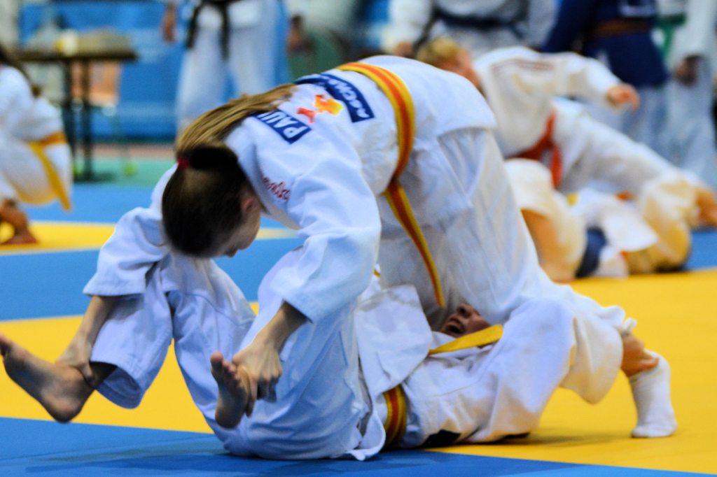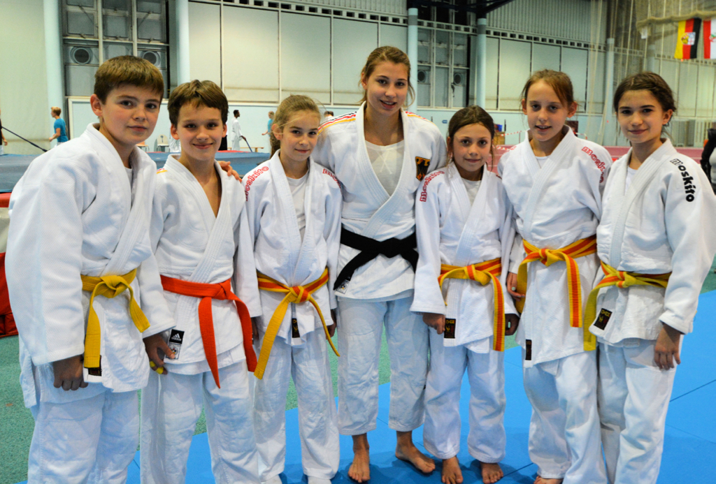 Um 19 Uhr ging es dann endlich los. Der Lehrgang begann mit turnerischen Übungen und Basis-Uchikomis. Hier legten die beiden Weltmeister sehr viel Wert auf den Stemmschritt. Nach dem Aufteilen in die Gruppen fintierte Alexander Wieczerzak einen Basiszug nach vorne mit seinem O-Soto-Gari. Dabei war es ihm wichtig, immer in den Boden nachzugehen. Sappho Coban baute eine methodische Reihe mit Ko-Uchi-Gari auf. Anschließend zeigte sie im Boden noch Juji-Gatame. Alle unsere SportlerInnen ließen sich bereitwillig von den Trainern verbessern und lernten viel dazu, wie man auf den folgenden Bildern sehen kann.