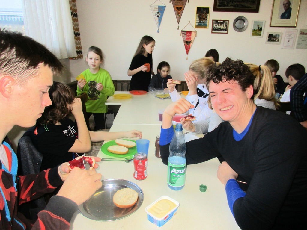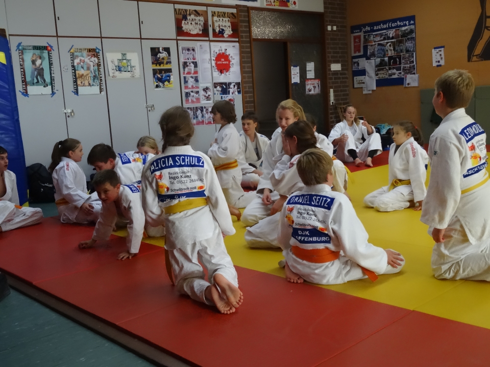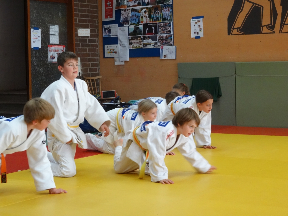 Der Donnerstag begann nach einer kurzen Nacht mit Jogging zum Schönbuschstadion und Sprints an der Brücke. Der Trainingstag startete mit Pezziball-Aufwärmübungen. In der folgenden Bodeneinheit wiederholten und festigten wir Sankaku-Gatame. Den Abschluss bildete eine Spielrunde. Betreuer und Kinder freuten sich dann (nur noch) auf eine Dusche und ein Bett.
