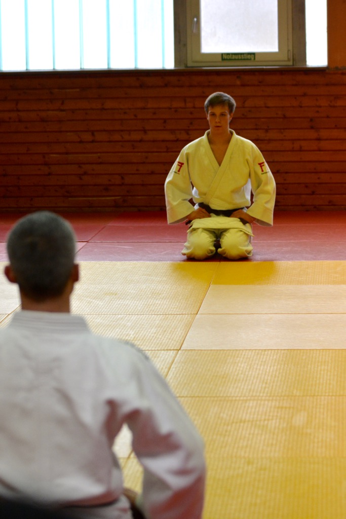 Nach einem von der Metzgerei Orschler gesponserten Mittagessen für die Prüfer ging es dann frisch gestärkt nachmittags an das Technikprogramm. Hier stellten sich David Zöller (JC Obernburg) und Anne Endres (TSV Lohr) dem Prüferteam. Beide hatten die Teilprüfung Kata bereits vorher abgelegt und bestanden ihren schwarzen Gürtel mit Bravour.