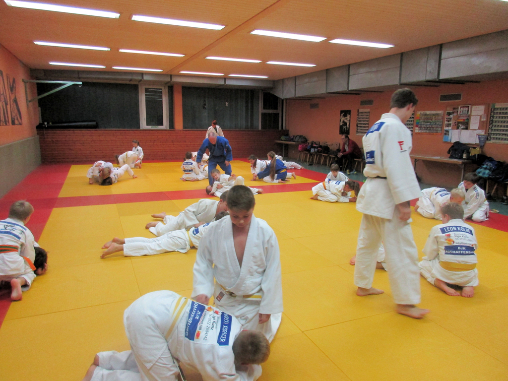 Neben den Prüfungen für die Braun- und Schwarzgurte am Wochenende richtete die DJK Aschaffenburg am Freitag auch das Stützpunkttraining des Bezirkes Unterfranken aus. Auf Anregung von Detlef Staffa und Frank Wagner wurde ein spezielles Training für die U12 eingeführt, das von 18.00 bis 19.00 Uhr im Dojo stattfand. Der TV Elsenfeld reiste mit einem Kleinbus und einem Auto voller Athleten an. Auch der Judokan schickte zwei Athleten auf die Matte. Bezirksjugendleiter Frank Wagner, unterstützt von Jonas Ludwig (DJK) und Katrin Eigenmann (TV Elsenfeld), zeigte Umdrehtechniken am Boden und ließ die jungen Athleten viele Randori machen. Eine tolle Sache mit Wiederholungswert.