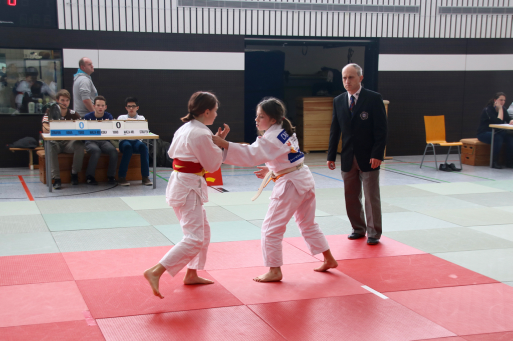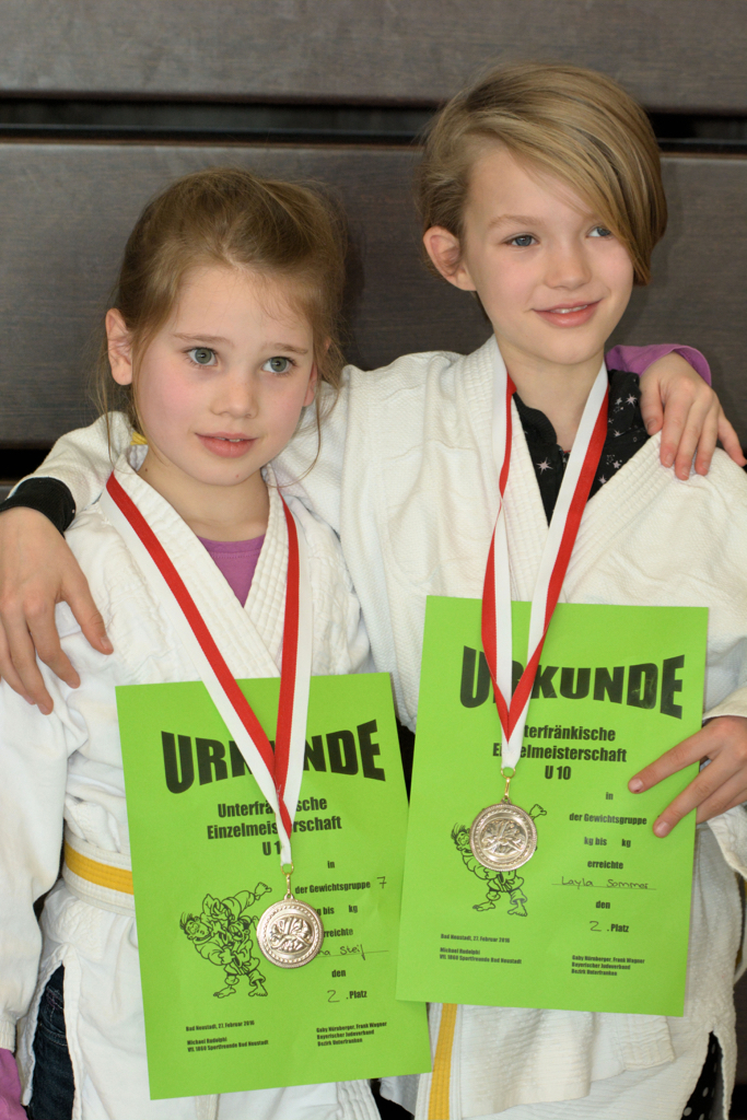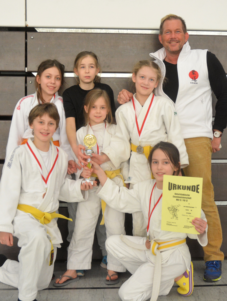 Bei der weiblichen U12 gewann Lotta Junker ihren Titel kampflos, da sie mit 22 kg die weitaus leichteste Teilnehmerin war. Bis 30 kg stellte sie sich dennoch den bis zu 8 kg schwereren Gegnern außer Konkurrenz und gab alles, musste sich letztlich jedoch aufgrund des zu großen Gewichtsunterschiedes geschlagen geben. Souverän gab sich Carla Amic, die alle drei Kämpfe vorzeitig gewinnen konnte. Sie zeigte ein tolles Judo und nahm den Unterfränkische Meistertitel verdient mit nach Hause. Unterfränkische Vizemeisterin wurde nach zwei Siegen und einer Niederlage Alicia Schulz. Charlotte Zach wurde Dritte und Dorina Sann wehrte sich in ihrem ersten Turnier als eine der Jüngsten in der U12 nach Kräften und wurde ebenfalls mit einer Bronzemedaille belohnt.