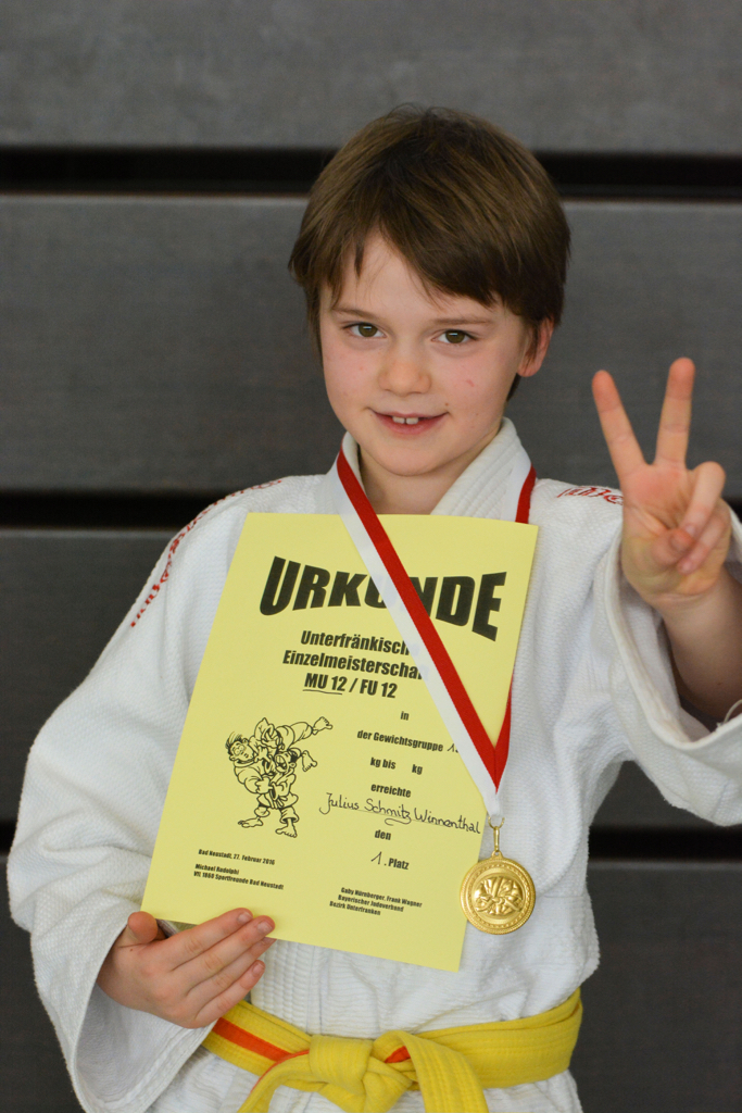 Bei den Größeren in der U12 wurde wieder nach Geschlechtern getrennt gekämpft. Julius Schmitz-Winnenthal besiegte gleich den Kitzinger gegen den er in Obernburg noch verloren hatte. Nach zwei weiteren Siegen hatte er den Unterfränkischen Meistertitel sicher. Erik Lichthardt kam diesmal leider nicht ins Rollen und wurde Dritter.