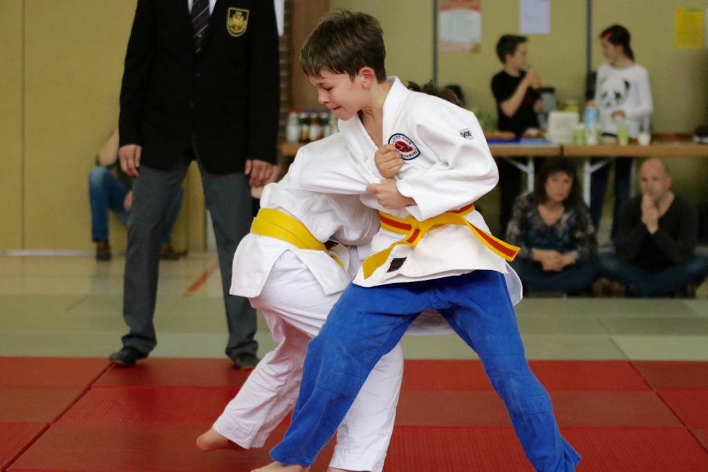 Bei der männlichen Jugend konnte Erik Püschel (KG Elsenfeld /Obernburg) bis 31 kg die Auftaktbegegnung mit 7:0 gegen Torben Michalk gewinnen. Im zweiten Kampf bis 34 kg musste Julius Schmitz-Winnental (KG Aschaffenburg) zuerst eine kleine Wertung gegen sich einstecken, ehe er, instruiert von Trainer Detlef Staffa, die Auslagenseite wechselte und mit 8:1 vorzeitig gewinnen konnte. Silas Klein (KG Elsenfeld/OBB, bis 37 kg) brachte im Anschluss den Untermain in Führung, was Erik Lichthardt (KG Aschaffenburg) jedoch wieder ausgleichen konnte. Eine Gewichtsklasse höher, bis 43 kg, punktete Moritz Hornung für Aschaffenburg, Jean-Remi Lebert glich jedoch umgehend wieder für die Untermainler aus. Nach Kämpfen stand es am Ende 3:3 – es musste also die Unterbewertung über den Sieg entscheiden. Denkbar knapp, mit einem einzigen Punkt Vorsprung, konnte die Kampfgemeinschaft Aschaffenburg den Unterfränkischen Meistertitel zuhause behalten. Nach Siegen der Elsenfelder in den letzten drei Jahren waren die Trainer, Jens Erbstößer (Judokan) und Jonas Ludwig (DJK) hocherfreut über über den nicht wirklich erwarteten Titelgewinn.