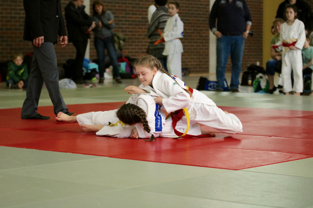 Den zweiten Meistertitel holten die Mädels der DJK Aschaffenburg kampflos. Verstärkt durch Nina Lindner (Judokan) und Lana Klein (JC Obernburg) demonstrierten Aschaffenburg und der Untermain eine gut funktionierende Kooperation. Leider meldete jedoch kein anderer unterfränkischer Verein eine Mädchenmannschaft. Damit die kleinen Judokas sich nicht umsonst umgezogen und warmgemacht hatten, sollten sie dennoch Gelegenheit zum Kämpfen bekommen. Da die Mannschaft gut besetzt war, wurde sie kurzerhand in zwei Teams aufgeteilt, die dann in einer Freundschaftsbegegnung als DJK1 und DJK 2 gegeneinander antraten. Gewonnen hat das Team DJK 1 mit 3:2 Kämpfen.