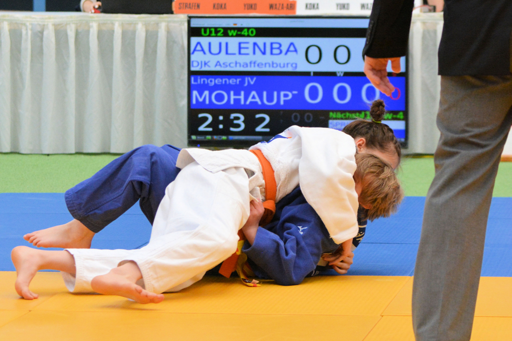 Lola Aulenbach legte gleich los wie die Feuerwehr. Nach Siegen gegen die Sächsin Wolke mit zwei Waza-ari und einem Haltegriff gegen die Niedersächsin Mohaupt stand die Aschaffenburger Athletin im Poolfinale gegen die spätere Vizemeisterin Stahlbock (Berlin). Ein Uchi-mata beendete jedoch Lolas Siegesserie. In der Trostrunde musste sie sich leider auch der Hessin Pfeiffer geschlagen geben und beendete Erfurt als Neunte in der Gewichtsklasse bis 40 kg.