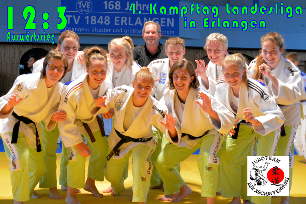 Nach einer Unterbrechung durch den Bayernligakampf der Männer setzte Detlef die Mannschaft um, und Lisa Ludolph erkämpfte gleich den ersten Punkt. Jessica Keil ging eine Gewichtsklasse höher bis 57 kg an den Start und gewann mit einer Bauchfessel. Fabienne Stamm, Laura Hofmann punkteten jeweils kampflos. Isabell Wegener gewann mit zwei Waza-ari durch einen Konter und einen Haltegriff und Anja Ühlein machte mit ihrem zweiten Sieg per Haltegriff den Erfolg der Aschaffenburger perfekt.