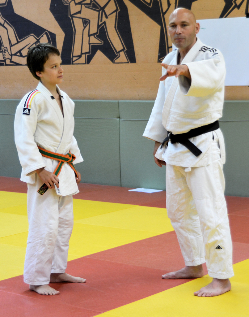 In der am weitesten fortgeschrittenen Stufe (Grüngurt) ging es um kleine aber wichtige Hilfestellungen beim Erlernen von zwei Würfen – Sode-tsurikomi-goshi und Uchi-mata, sowie um Unterstützung beim Erlernen und Üben der für die Gürtelprüfung notwendigen Kata.