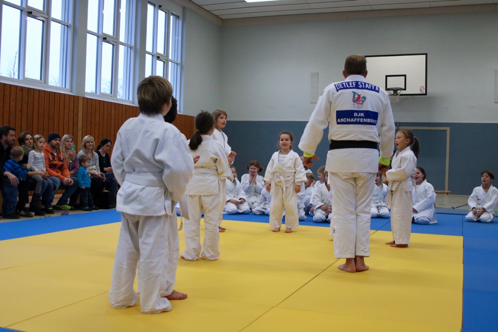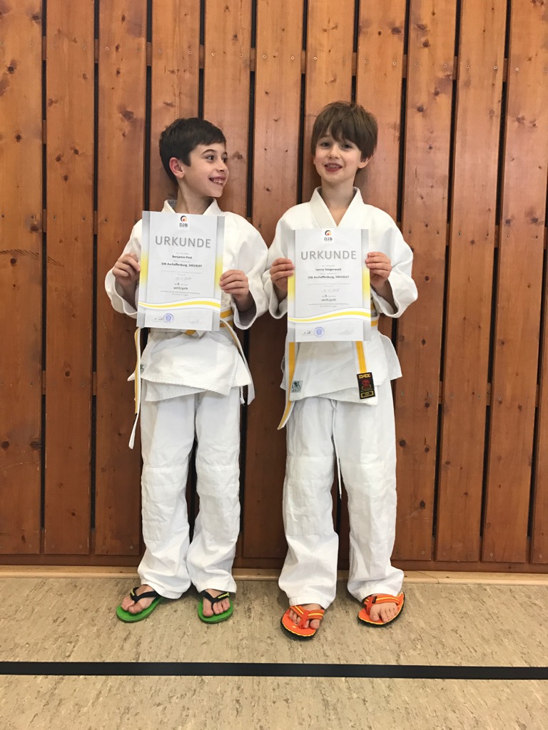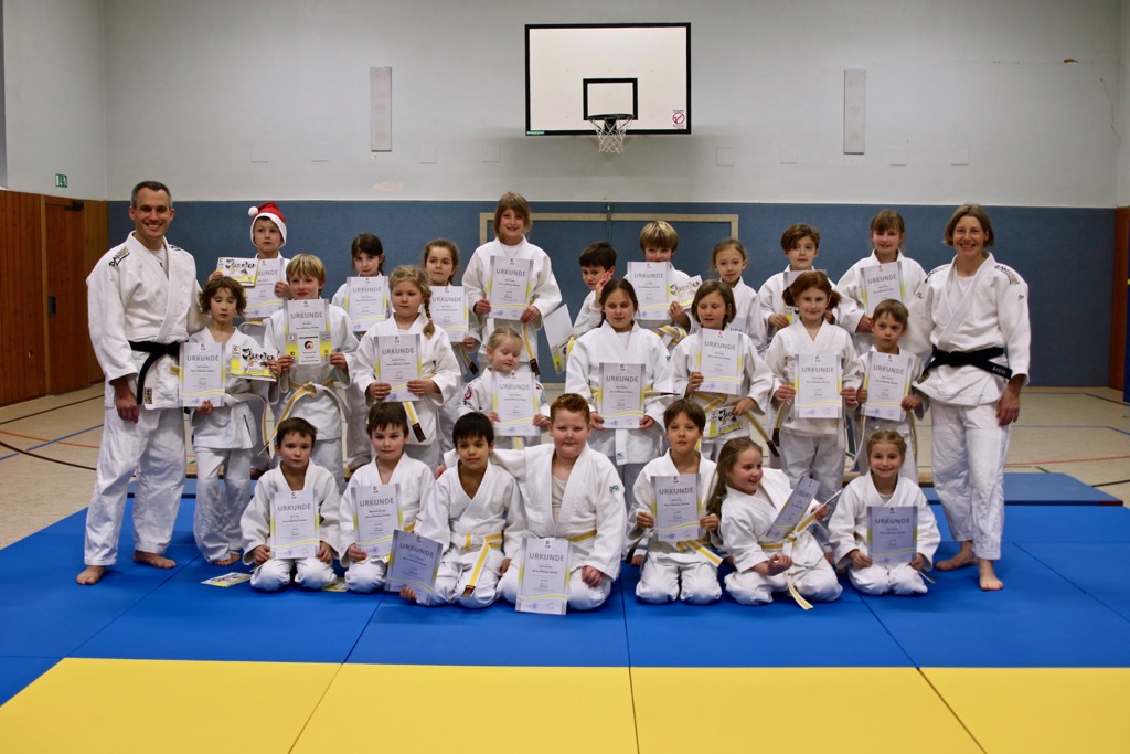 Auch wenn die Nervosität am Anfang noch spürbar war, waren die Kinder schnell konzentriert bei der Sache und zeigten eifrig die geforderten Techniken. Nach einer guten Stunde hatten sie es dann geschafft und bekamen von den Prüfern und ihren Trainern den weiß-gelben Gürtel und die Prüfungsurkunde überreicht. Wir gratulieren allen frischgebackenen Trägern des 8. Kyu zur bestandenen Prüfung und freuen uns auf das Abschlusstraining vor Weihnachten, bei dem wir mit Judospielen ausgiebig den neuen Gürtel feiern werden. (cs)