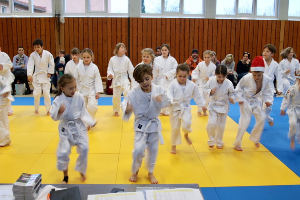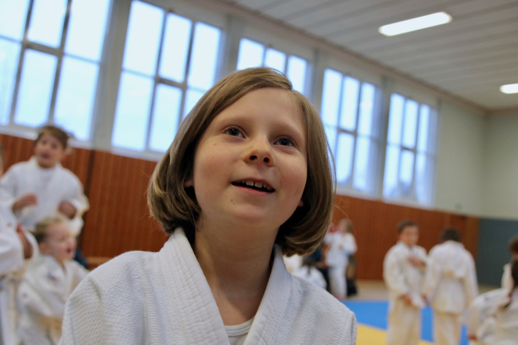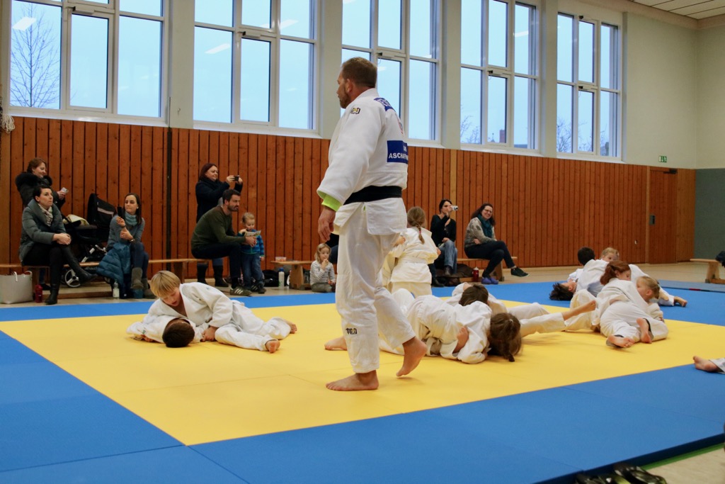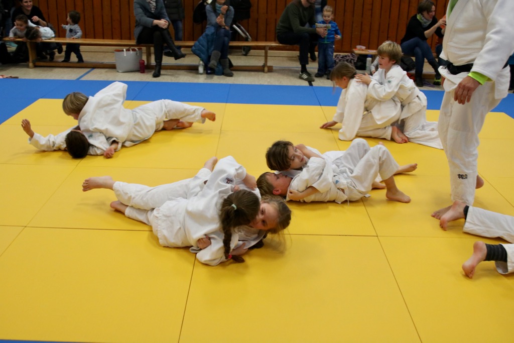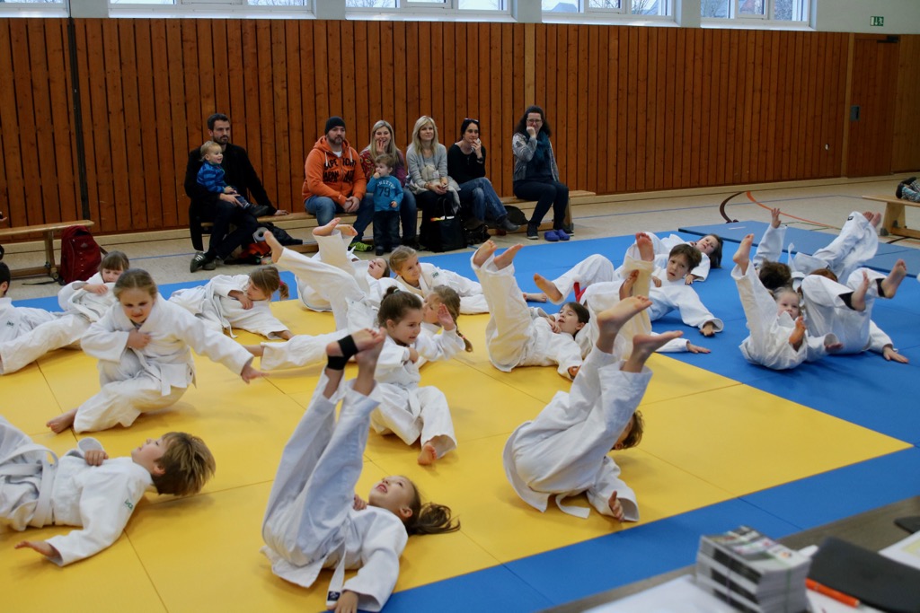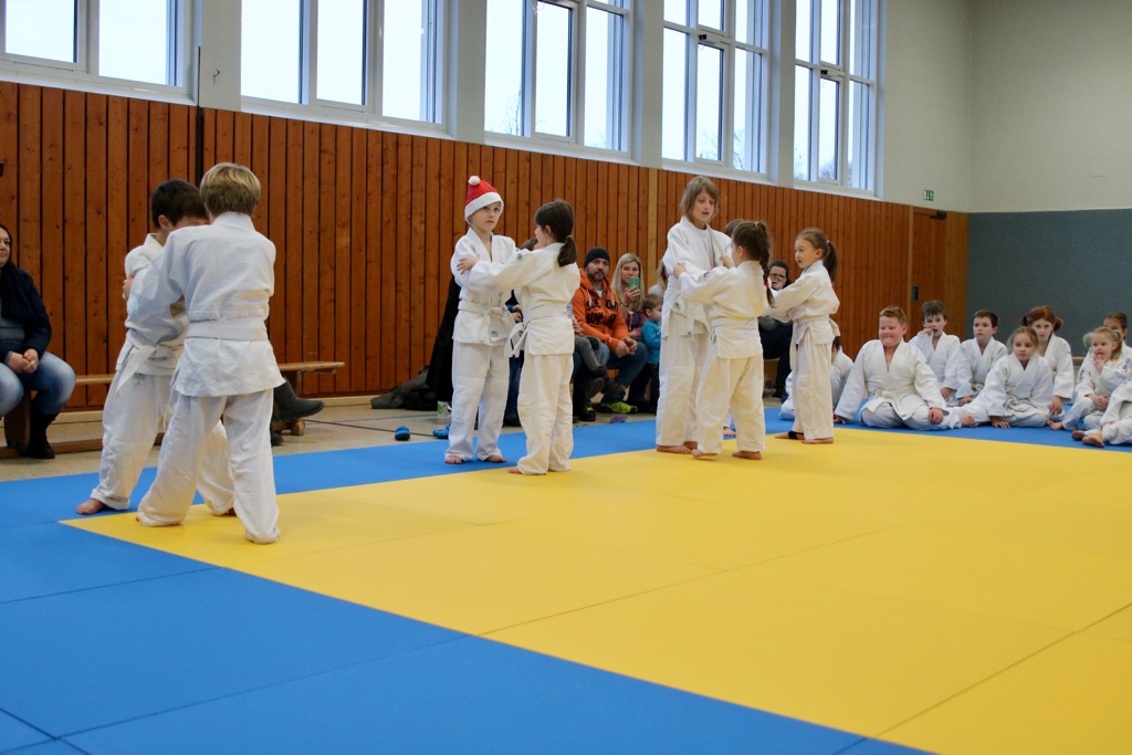 Am 13. Dezember stellten sich die Kids der Dienstagsgruppe in der Grünewaldschule ihrer ersten Gürtelprüfung im Judo. Nach mehr als sechsmonatiger intensiver Vorbereitung zeigten die 28 jungen Judoka, was sie bei ihren Trainern, Andrea Schlauersbach und Carsten Sann, gelernt haben. Unter den Augen des Prüferteams Detlef Staffa und Klaus Richter demonstrierten die Kinder die Fallschule rückwärts, seitwärts und die Judorolle. Anschließend ging es dann jeweils mit Partner in den Technikteil, in dem zwei Verkettungen von Wurf, Haltegriff und nachfolgende Befreiung aus dem Haltegriff gezeigt werden mussten. Den letzten Teil der Prüfung bildeten mehrere Bodenrandoris (Übungskämpfe) mit wechselnden Partnern.