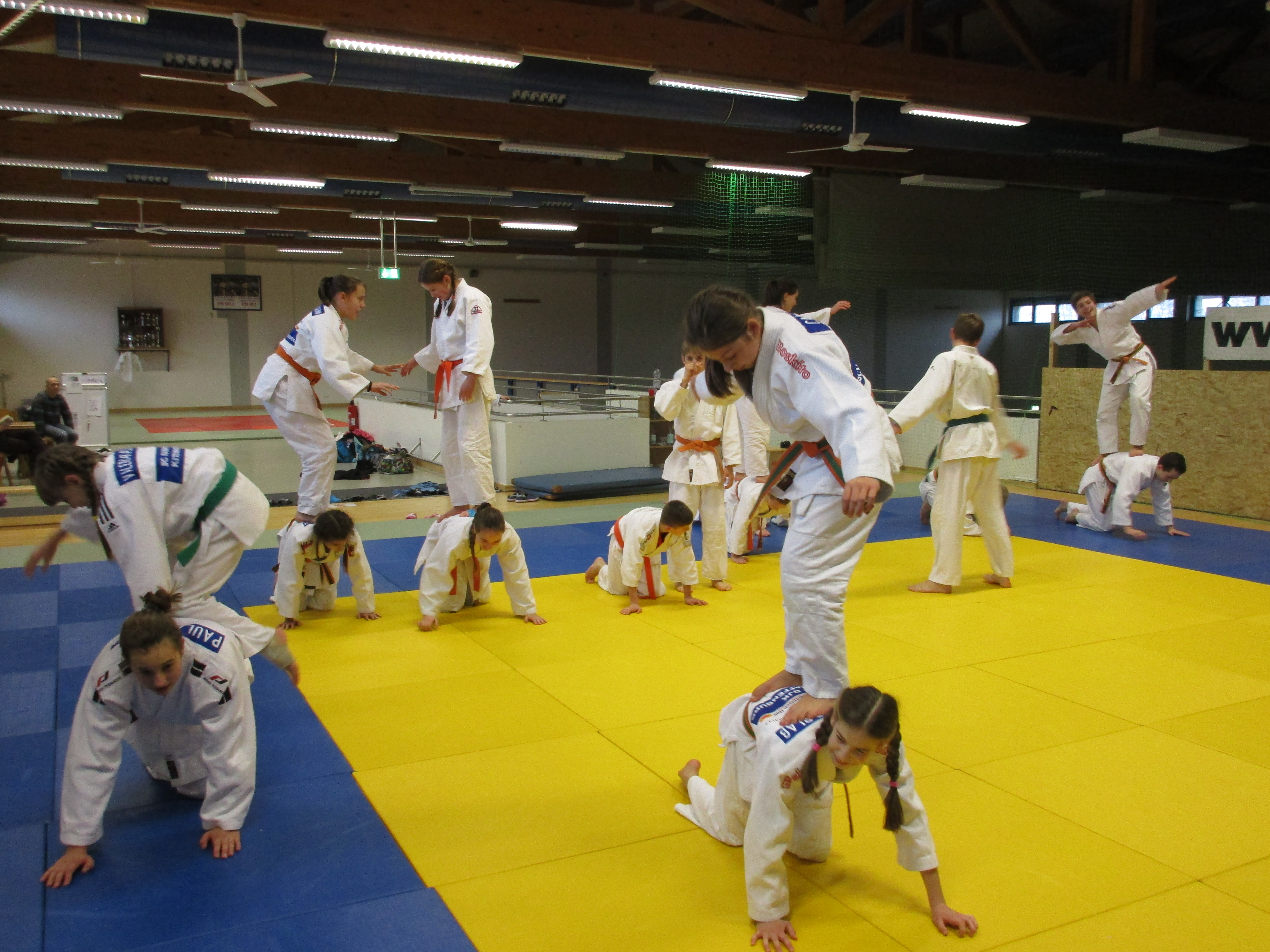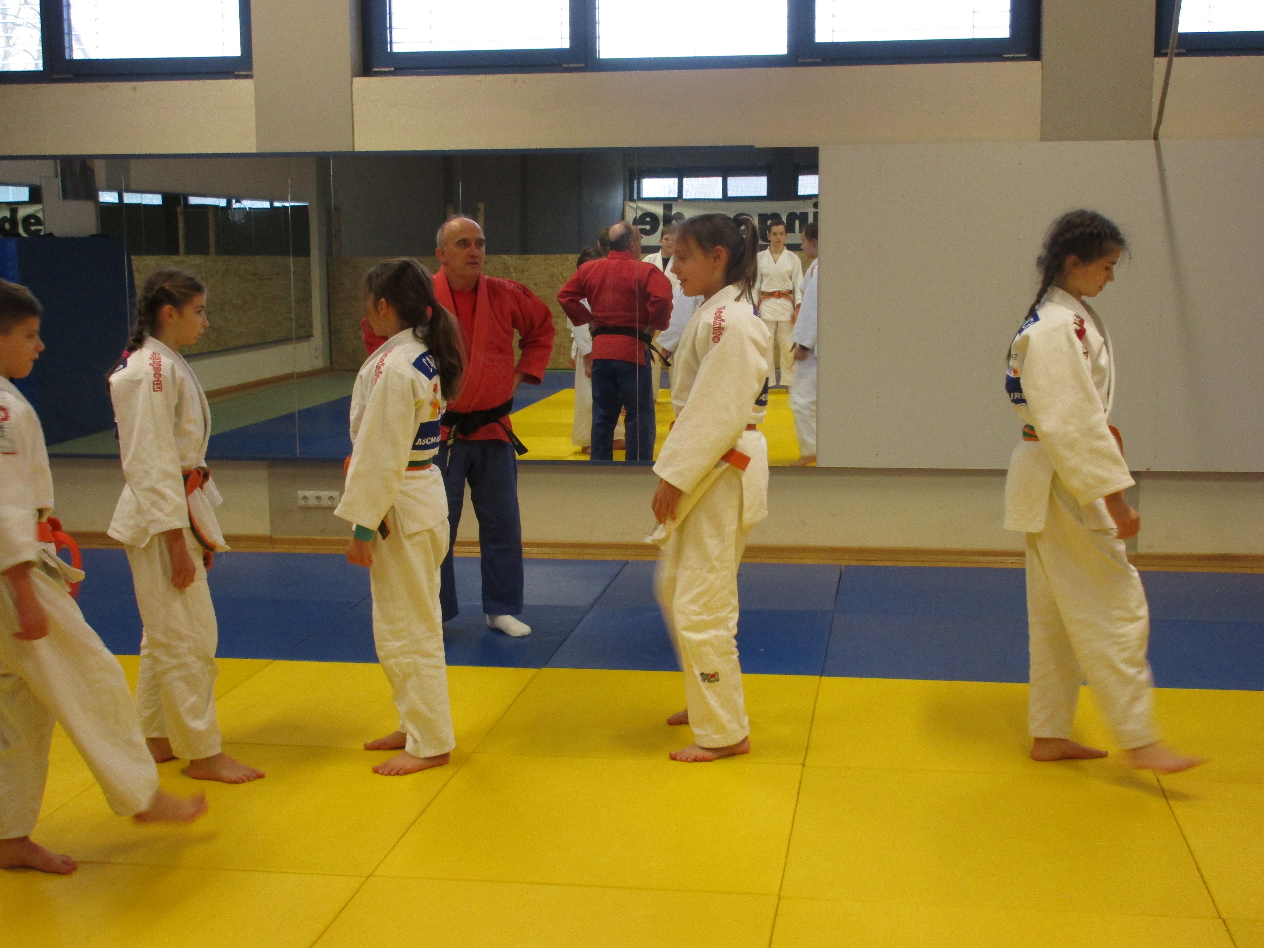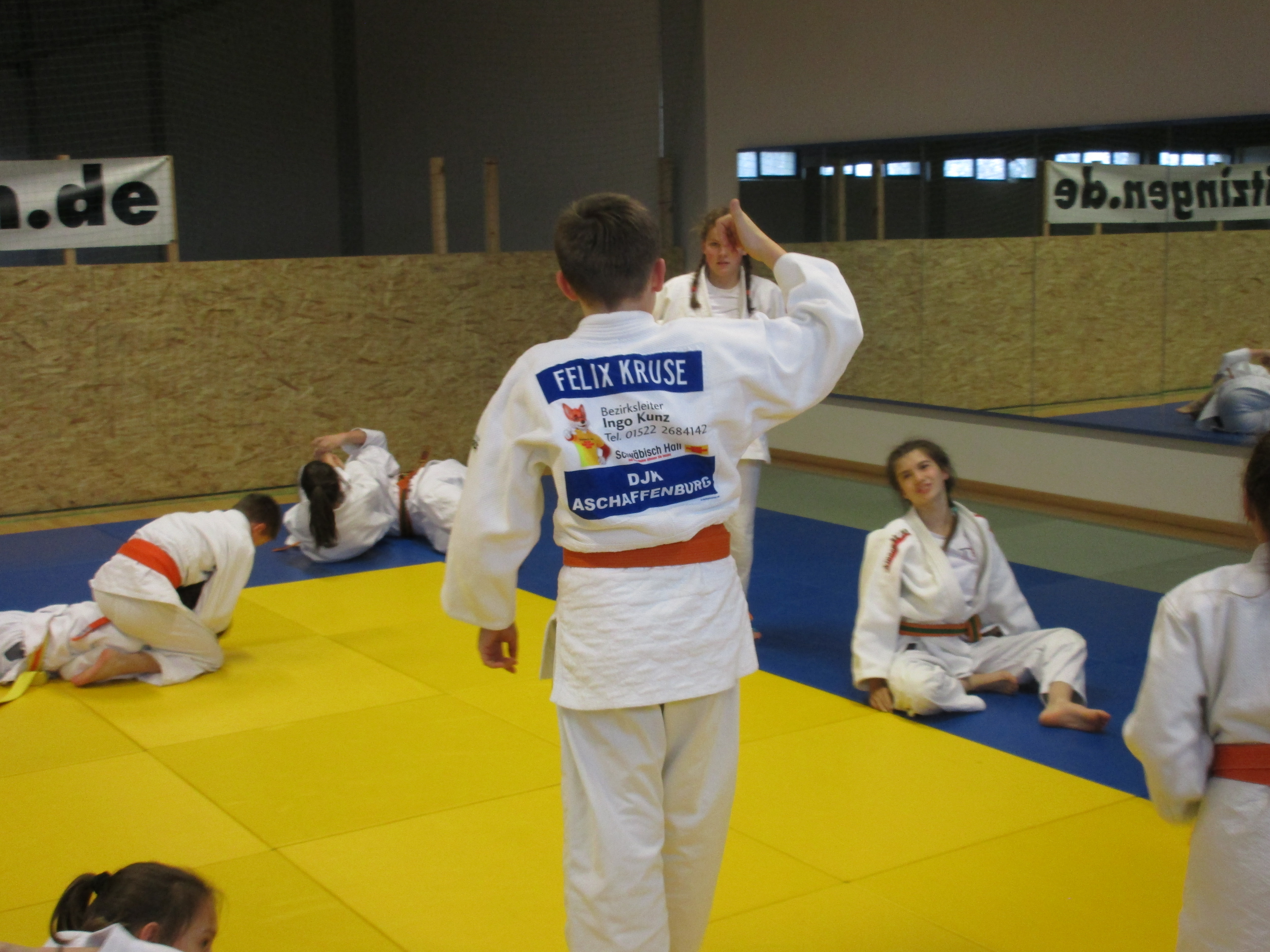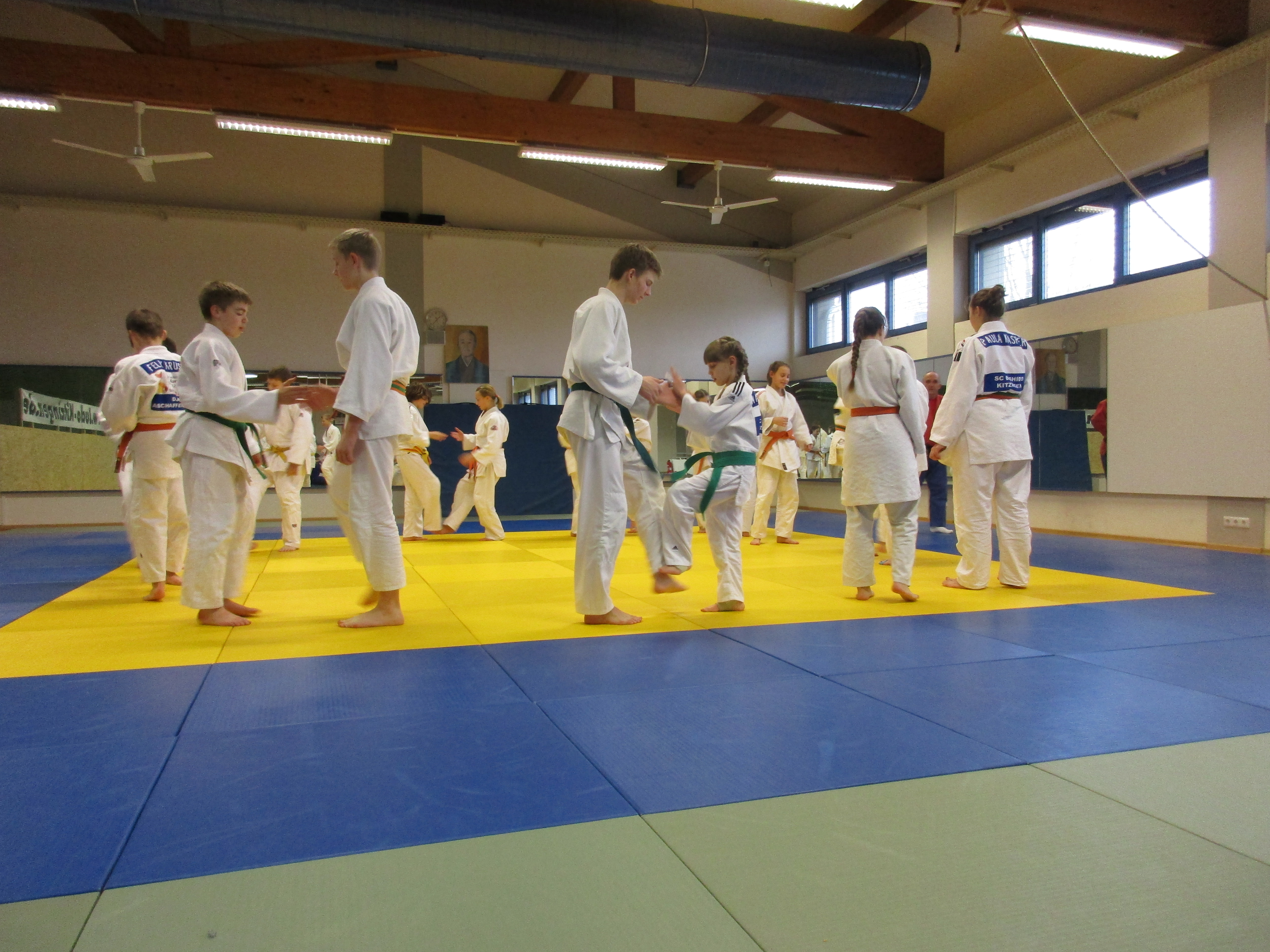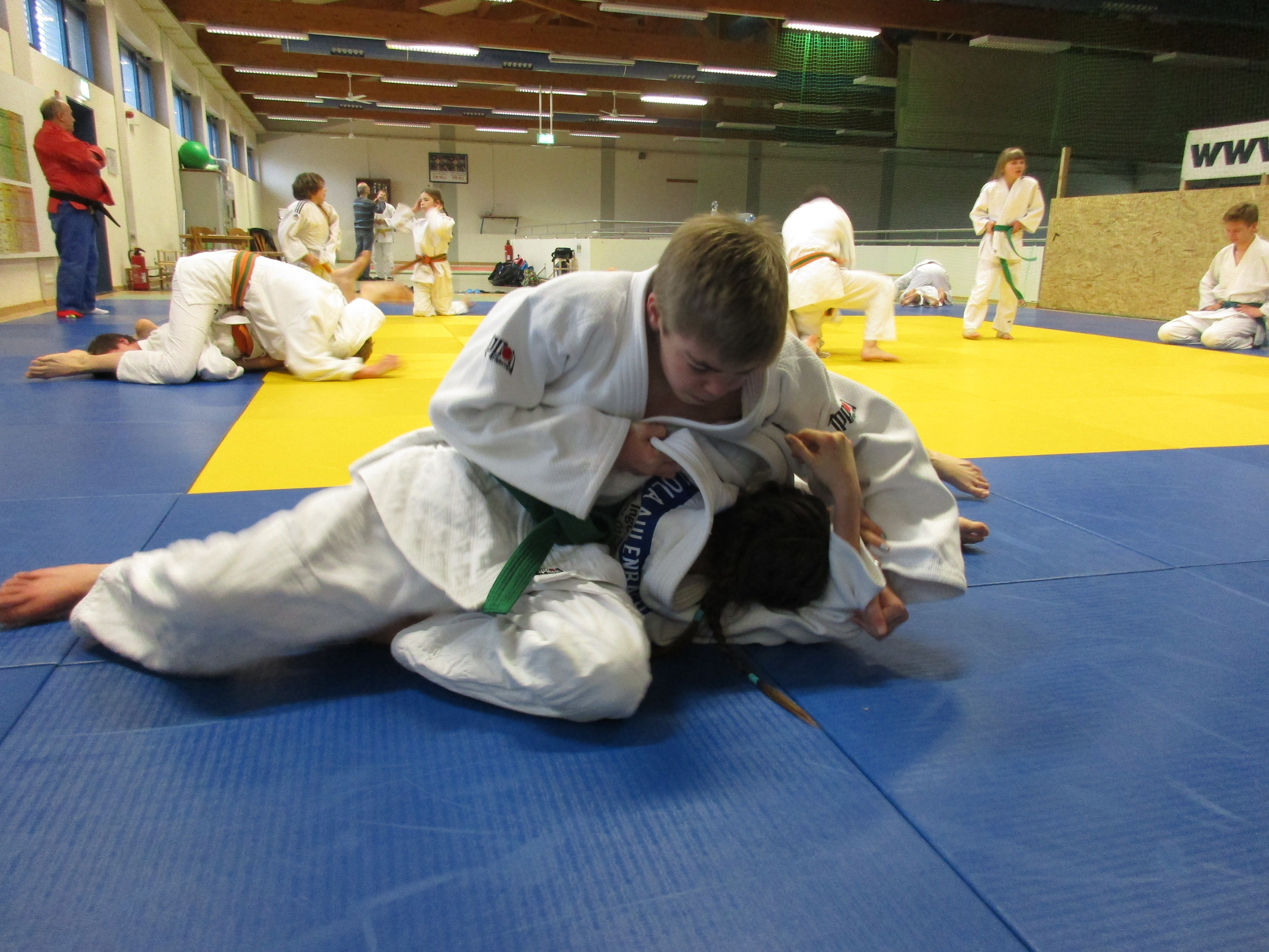Die beiden Einheiten am Vormittag widmeten sich dem Thema Bodenkampf. Hierbei wurde auf die Veränderungen von U12 zu U15, dem Hebeln, und von U15 zu U18, dem Würgen, eingegangen. Den Abschluss bildete ein Randoriturnier.