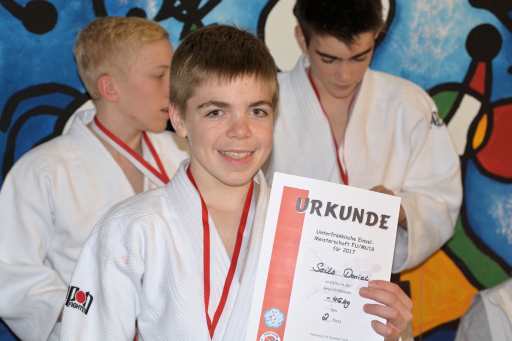 Uchi-mata war die Erfolgstechnik von Jonas Elschner beim Sieg in der Gewichtsklasse -60 kg. Auf dem Weg zum Titel gewann er gegen Mohamed Mahammadi (Eltman), Emil Kraus (Eltmann) und seinen Vereinskameraden Theo Aulenbach vorzeitig. Im Halbfinale konnte er durch einen Shido-Vorteil gegen Niklas Hornung (Judokan Aschaffenburg) punkten, der montags bei uns mittrainiert. Im Endkampf stand er Viktor Kraich (Bad Kissingen) gegenüber und wieder war es ein Uchi-mata, der ihm den Sieg bescherte. Theo Aulenbach und Niklas Hornung (Judokan Aschaffenburg) wurde jeweils Dritter.