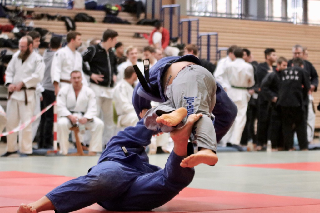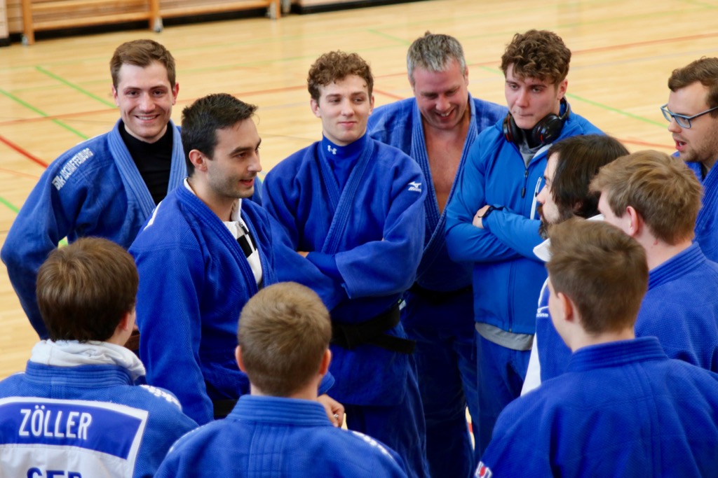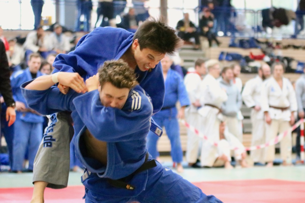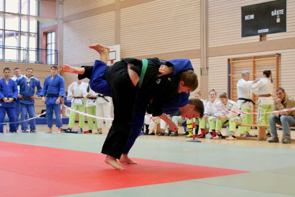 Die Männer der DJK waren mit 14 Kämpfern fast dreifach besetzt – pro Mannschaft wurde in fünf Gewichtsklassen gekämpft. Gleich das erste Los war jedoch ein schweres: Es ging gegen den Bundesligisten Erlangen I. Dementsprechend deutlich war auch das Ergebnis. Beim 1:4 konnte lediglich Niklas Kern punkten und den Kampf mit einem Tai-otoshi vorzeitig für sich entscheiden. In der Trostrunde traf die DJK im Lokalderby auf Lohr und konnte die Begegnung 4:1 gewinnen. Schluss war dann leider schon nach der nächsten Runde gegen Randori Berlin. Die Begegnung ging denkbar knapp mit 2:3 verloren, was ein wenig ärgerlich war, weil die Kampfrichter ein fälliges Hansoku-make gegen Berlin für einen Griff ans Bein nicht gaben. Im Nachhinein wurde die Fehlentscheidung zwar anerkannt, konnte natürlich jedoch nicht mehr zurückgenommen werden. Auch wenn der inoffizielle Saisonauftakt der Landesligamannschaft der Männer nicht von Edelmetall gekrönt war, konnte man immer wieder durchblitzen sehen, dass viel Potenzial im Team steckt, das bis zum ersten Liga-Kampftag sicher noch kultiviert werden wird.
