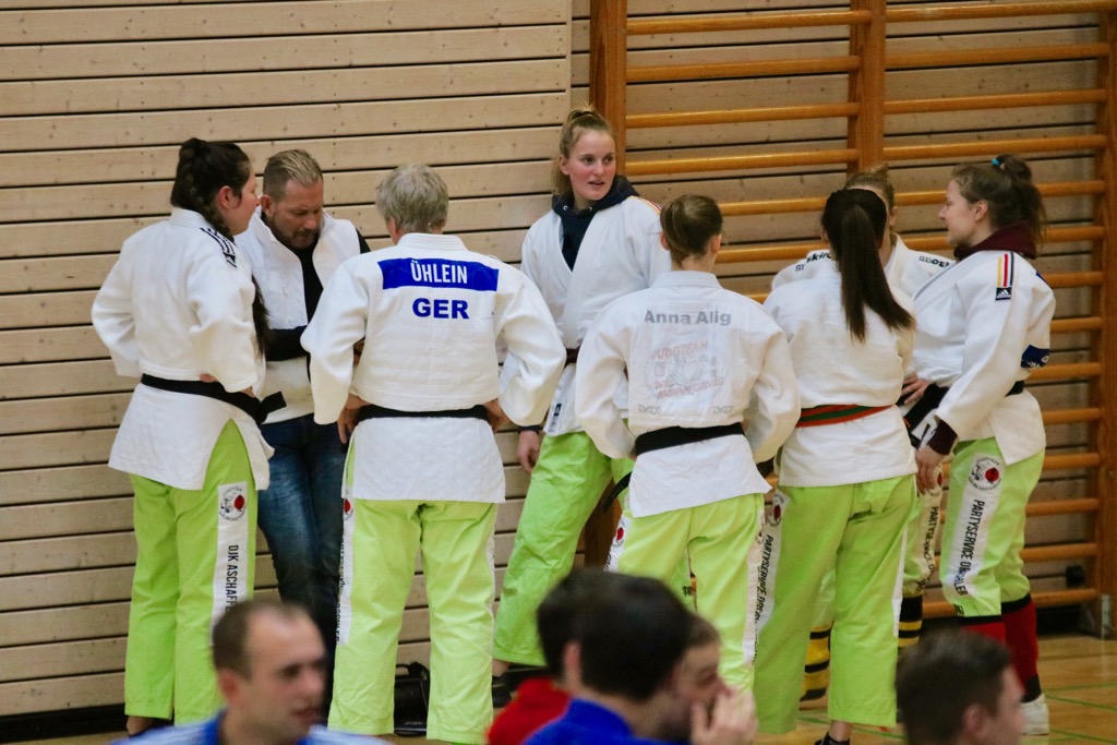 Bei den Frauen gingen diesmal nur sieben Starterinnen über die Waage. Hier gab es gleich zum Auftakt das traditionell emotionsgeladene Derby mit Lohr, das die DJK mit 4:0 souverän für sich entscheiden konnte. Der spätere Sieger Bad Ems schickte die DJK Mädels dann schon in der 2. Begegnung mit 1:4 in die Trostrunde. Den Ehrenpunkt für Aschaffenburg holte Melissa Ostheimer. In der 3. Runde gegen die KG Rimbach-Bürstadt war dann auch für die Frauen Schluss – wiederum denkbar knapp. Anna Alig lag bereits mit Waza-ari und Yuko vorne, musste jedoch in den letzten fünf Sekunden aufgeben, weil ihre Gegnerin sie abhebelte. Damit ist auch die Frauenmannschaft, letztjähriger Meister der bayerischen Landesliga Nord, in die Saison gestartet. Wenn das Team in voller Stärke auflaufen kann, werden wir auch hier sicherlich wieder mitreißende Kämpfe und viele Siege sehen können.