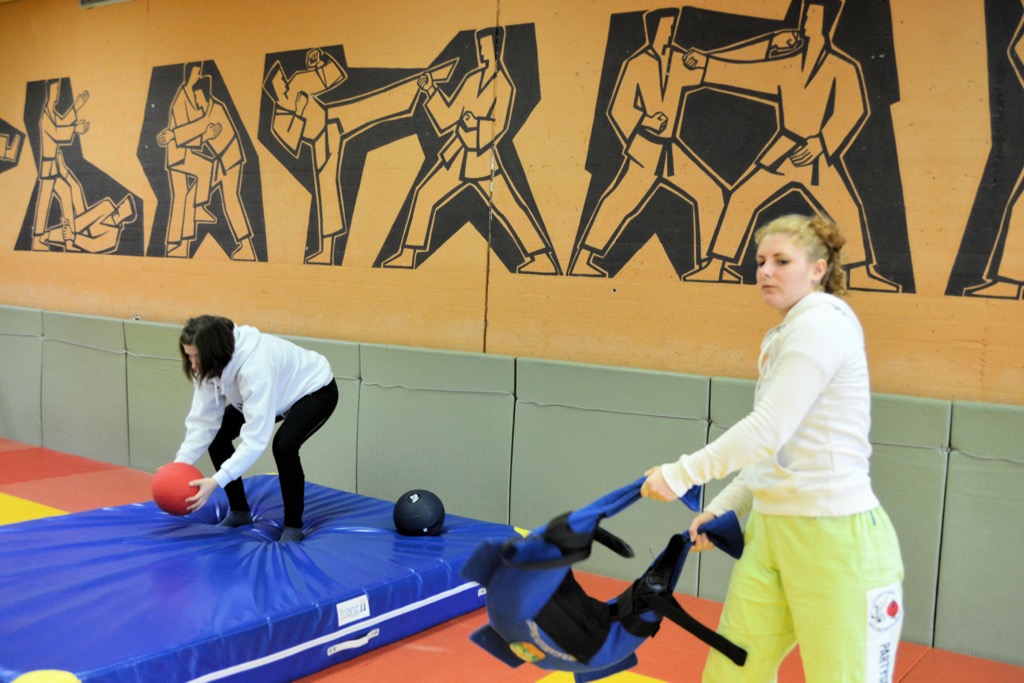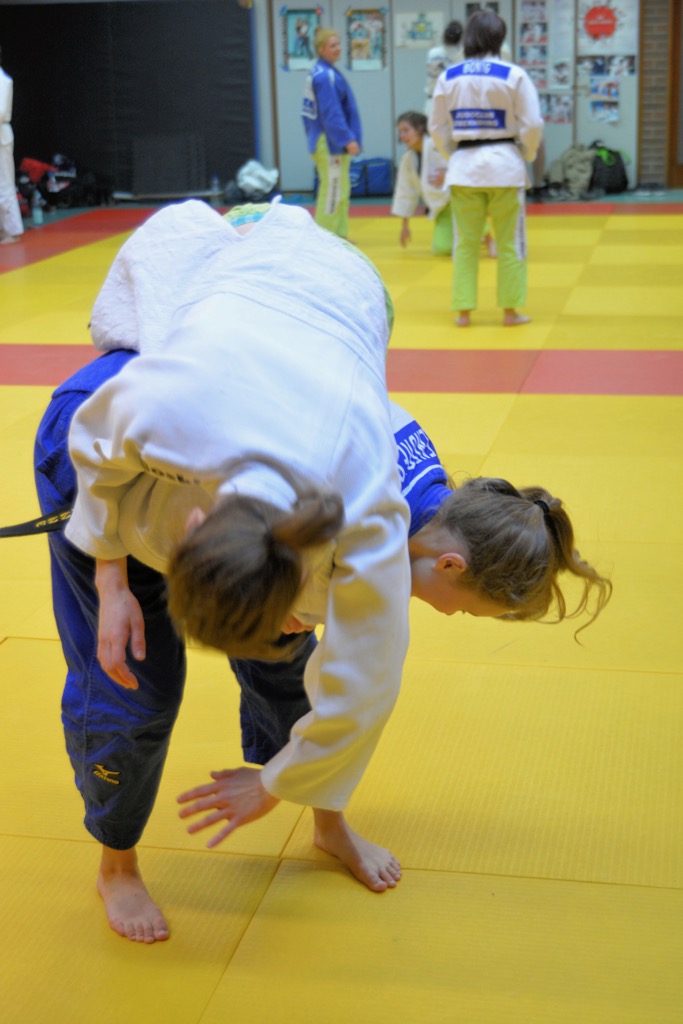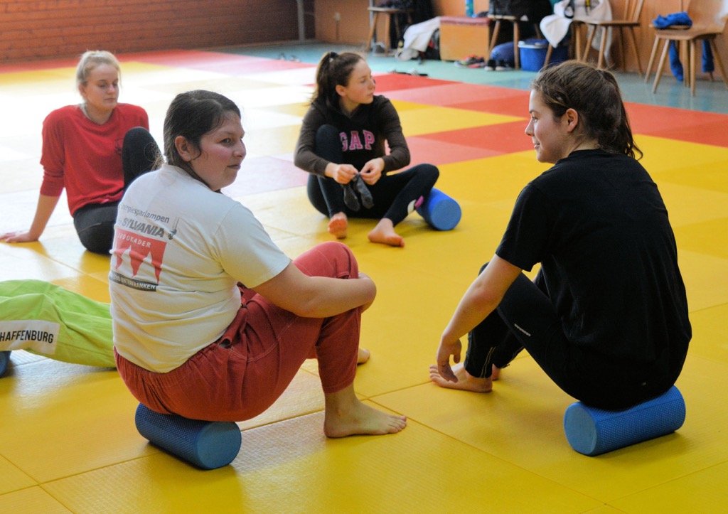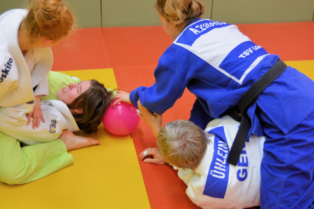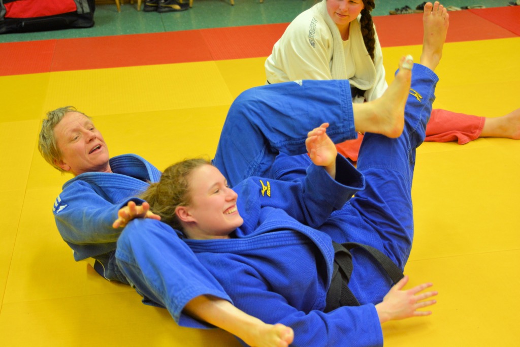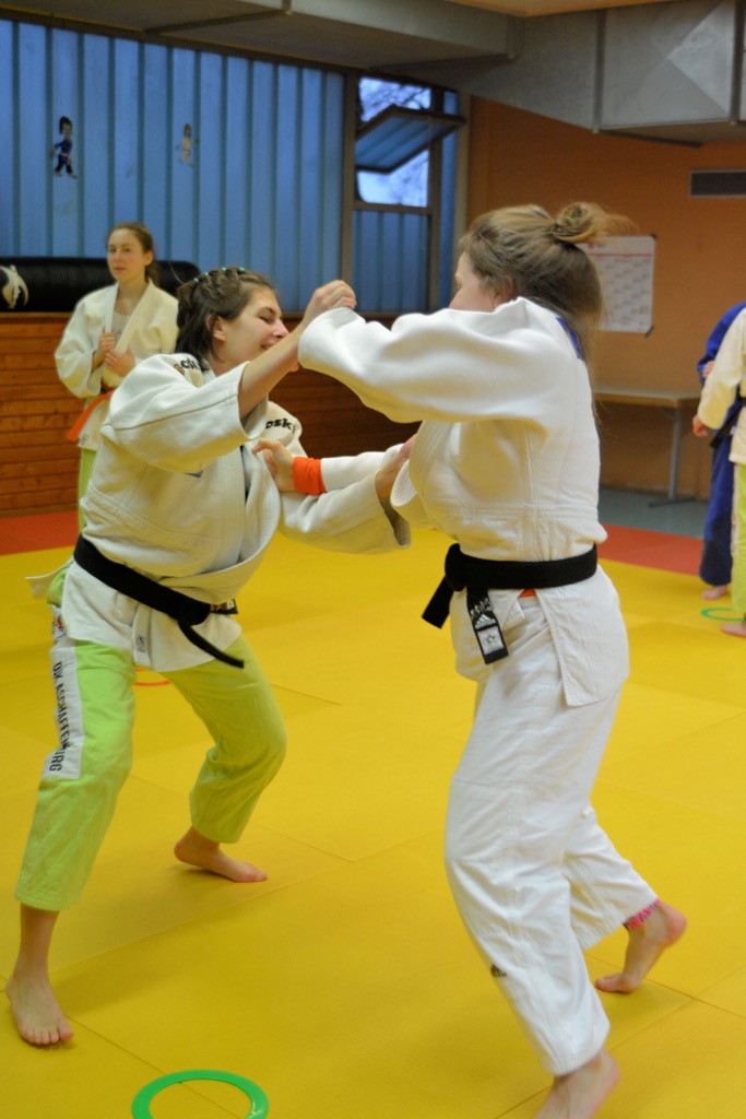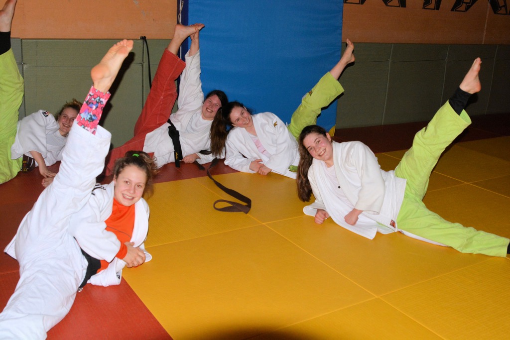 Unter der Leitung von Detlef Staffa begannen am Samstag 13 Frauen mit koordinativen Teamübungen wie Synchronisation an der Koordinationsleiter oder dem Bauen von menschlichen Pyramiden und einigen Judotechniken beispielsweise Korea-Seoi-Nage. Danach stärkten wir uns in der Sportgaststätte des DJK und übergaben unserem Trainer Detlef und der „Team-Mama“ Anja Geburtstagsgeschenke. Abends nach einem kurzen Aufwärmen mit Luftballoneroberung powerten wir uns mit Discorandori aus. Wir ließen den anstrengenden Tag mit einer entspannten Massage welche durch Teammitglied Laura geführt wurde und einer Bilderschow des letzten Kampfjahres ausklingen um dann entspannt zu schlafen.