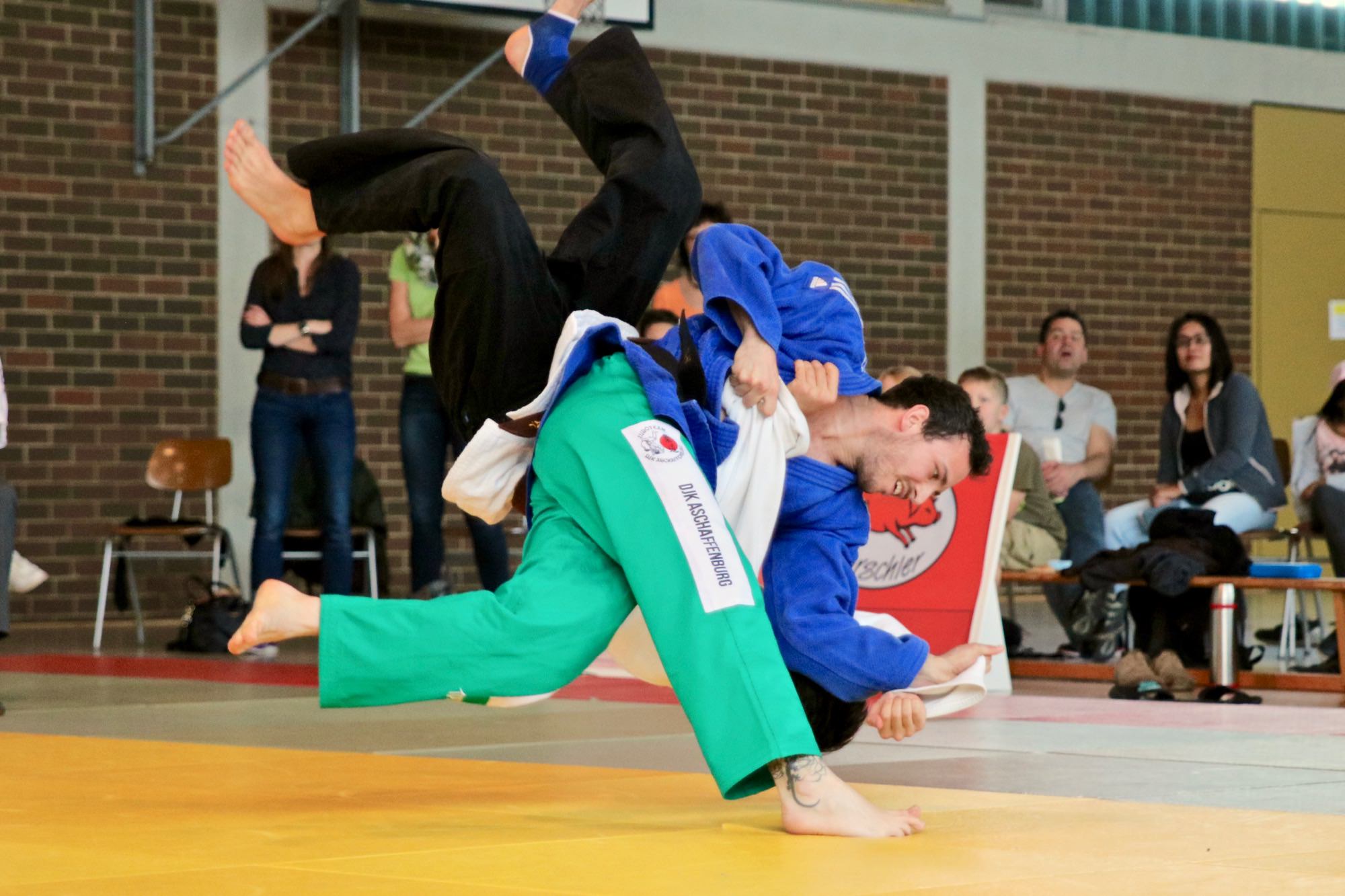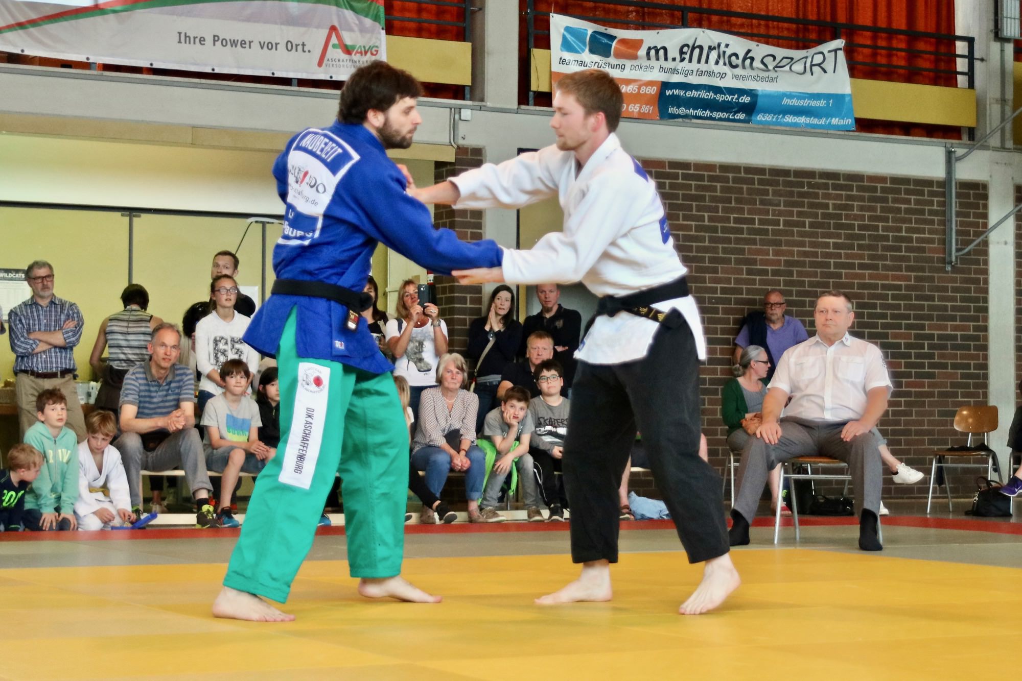 Mit einigen taktischen Wechseln ging es für die Aschaffenburger dann in die zweite Runde. Und diese zahlten sich aus – die DJK musste noch weniger Punkte abgeben als im ersten Durchgang. Paul Schulz und Daniel Stamm gewannen die Gewichtsklasse -81 kg. Patrick Dobai-Krecht gewann wiederum seinen Kampf +90 kg und die 73er Jonas Ludwig und Tom Junker konnten ebenfalls punkten. Auch in der Gewichtsklasse -90 kg holten Niklas Kern und Teamkapitän Sebastian Staudt beide Zähler nach Aschaffenburg und den Schlusspunkt setzte Fabio Pecchia (-66 kg). Der Endstand lautete schließlich 15:5 und der Freuden-Kampfschrei der DJK’ler mit den Judo-Kids „Who let the dogs out?“ brachte die Halle zum Beben.