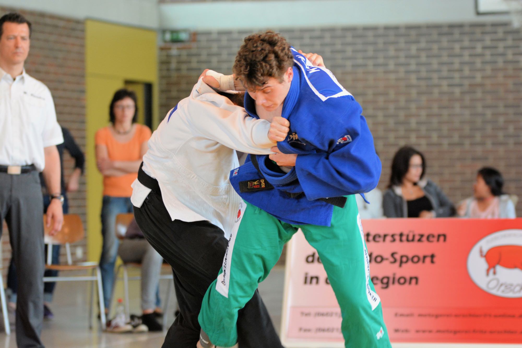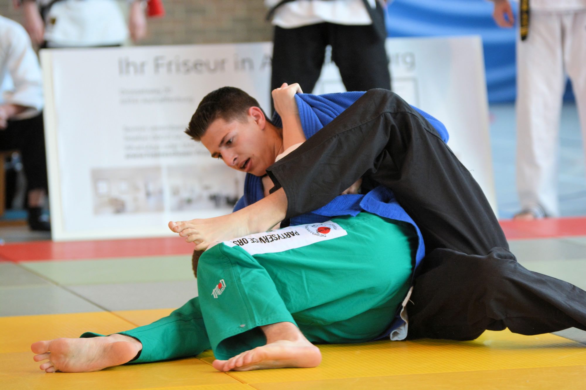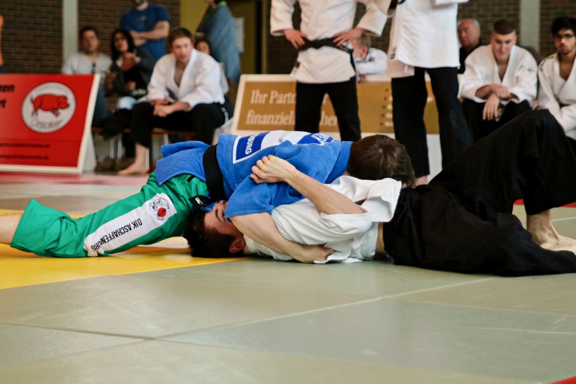 Im ersten Durchgang des Landesliga-Kampftages ging die DJK dann schnell mit 3:0 in Führung. David Flörchinger, Daniel Stamm (-81 kg) und Patrick Dobai-Krecht (+90 kg) ließen ihren Gegnern keine Chance und gewannen ihre Kämpfe alle vorzeitig mit Ippon. Die furiose Serie zu Beginn wurde kurzzeitig durch eine Niederlage im zweiten Kampf der Schwergewichtler gebremst, Tom Junker, Paul Schulz (-73 kg) und Niklas Kern (-90 kg) sorgten jedoch mit einem zweiten Dreierpack für eine komfortable 6:1 Führung. In den letzten drei Kämpfen des ersten Durchgangs konnte nur noch Fabio Pecchia (-66 kg) für die Mannschaft der DJK punkten, diese ging jedoch dennoch hochzufrieden mit einem Zwischenstand von 7:3 in die Pause.