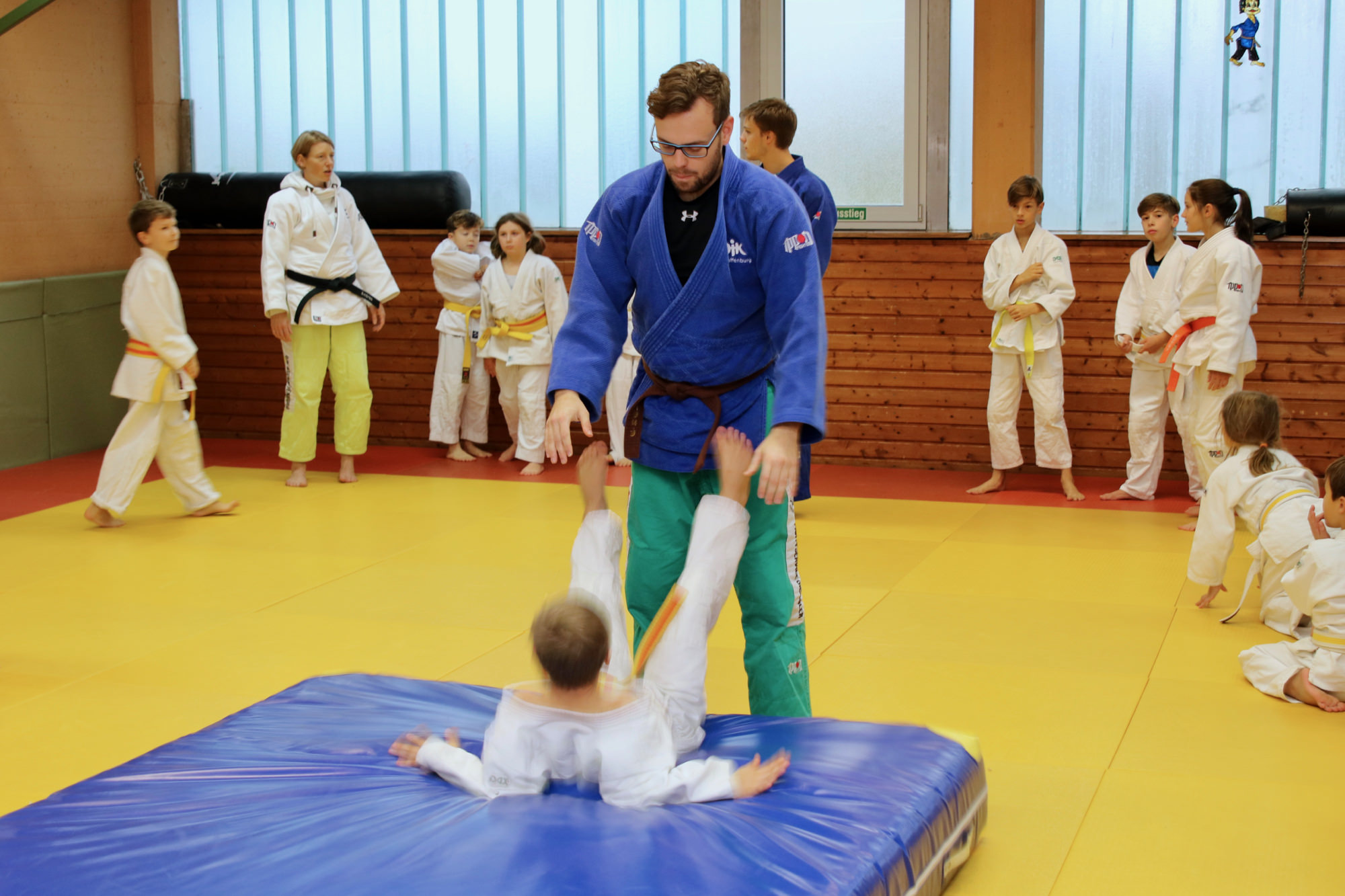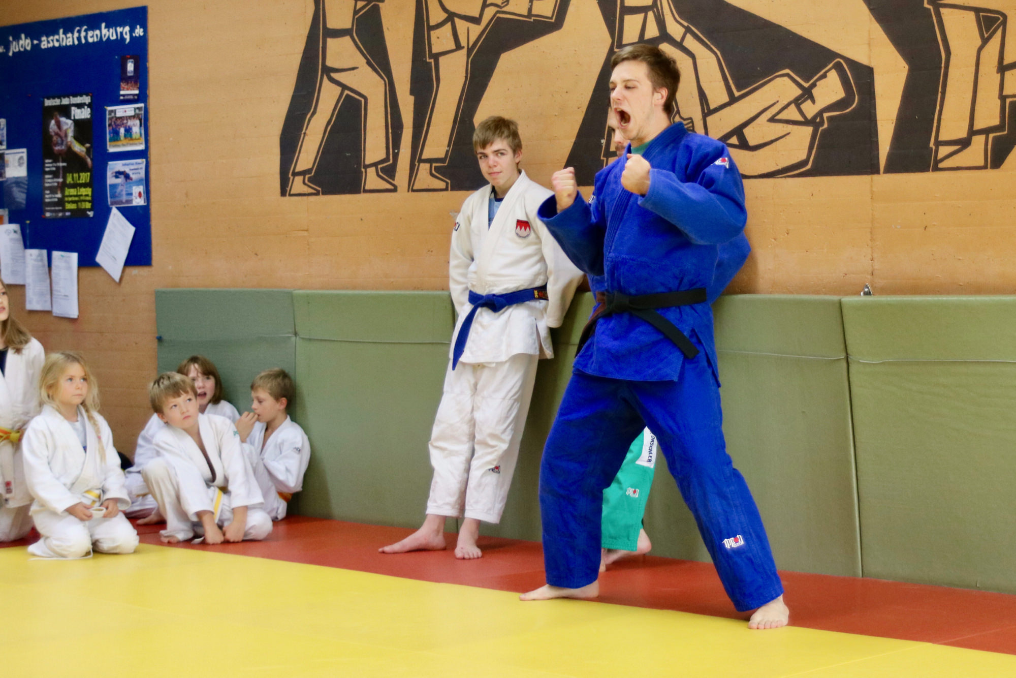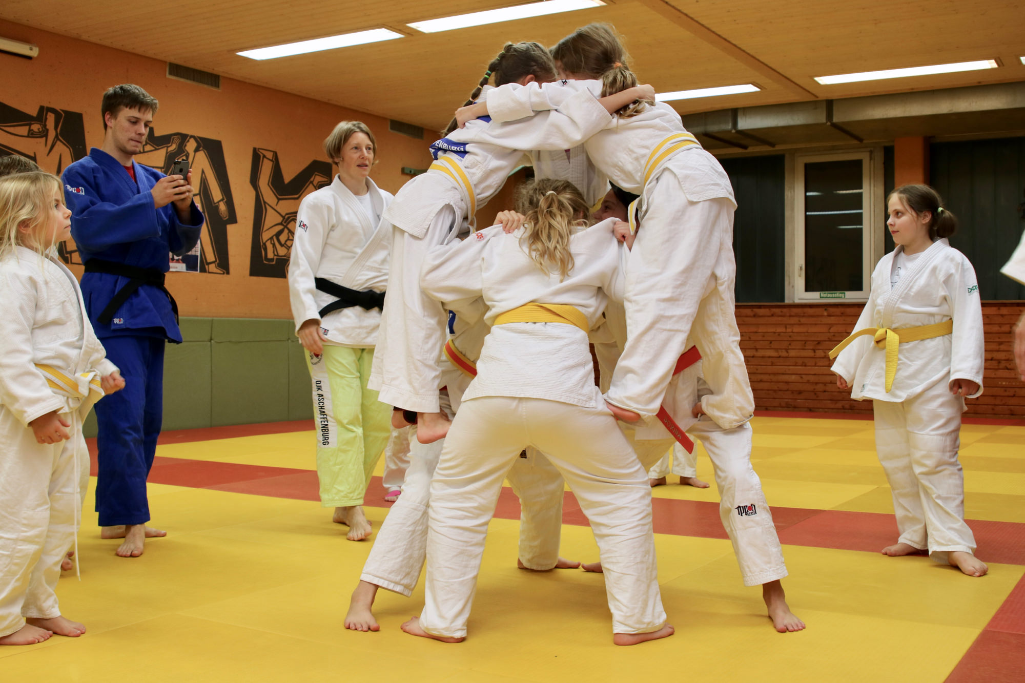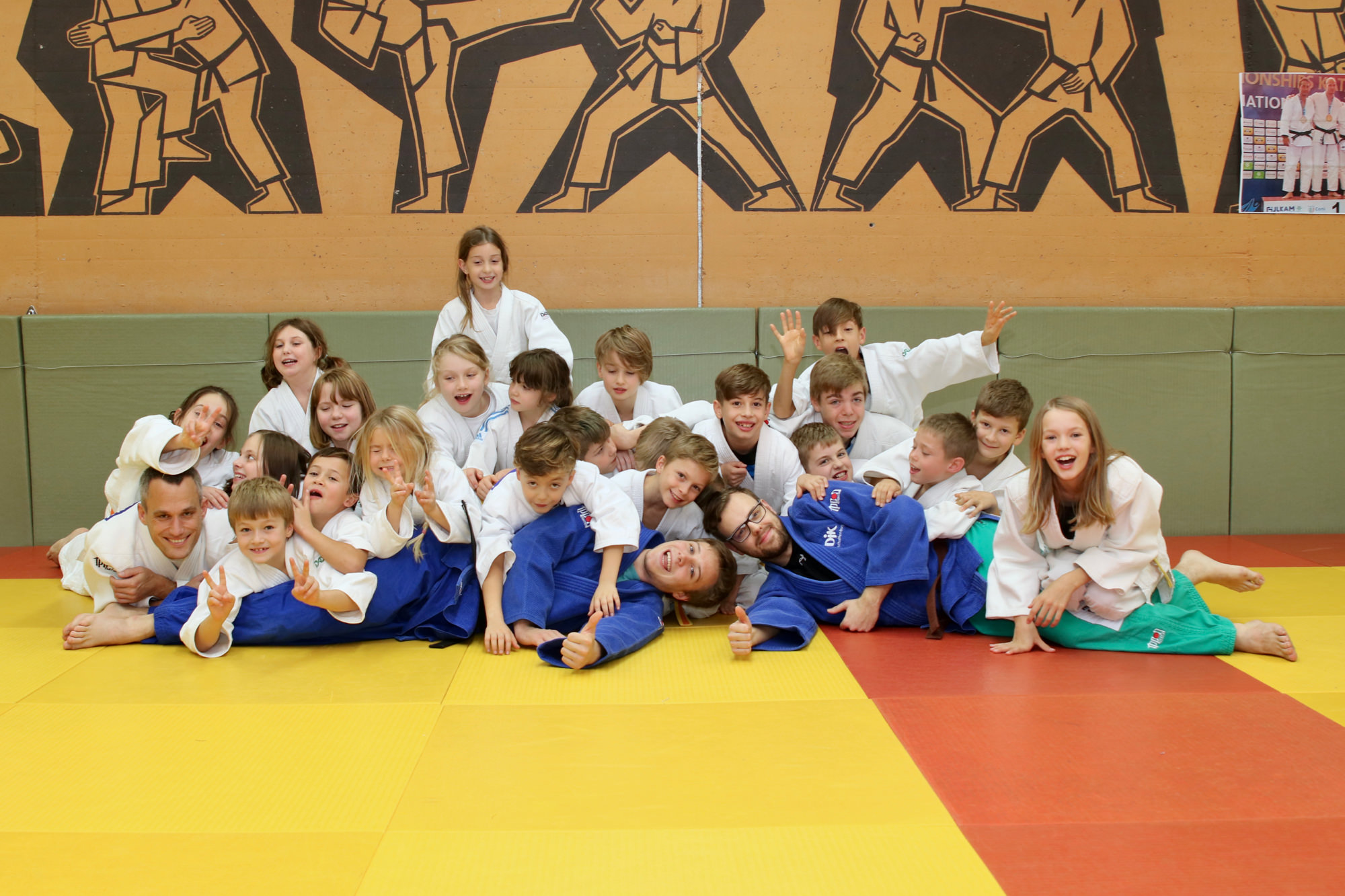 Gleich am ersten Ferienwochenende gab es im Dojo der DJK Aschaffenburg den Herbstlehrgang der U10/U12. Am Samstagmorgen fanden sich 25 kleine Judoka aus verschiedenen unterfränkischen Vereinen bei uns ein, um die Herbstferien gebührend mit dem eineinhalbtägigen Workshop inklusive Übernachtung einzuläuten.