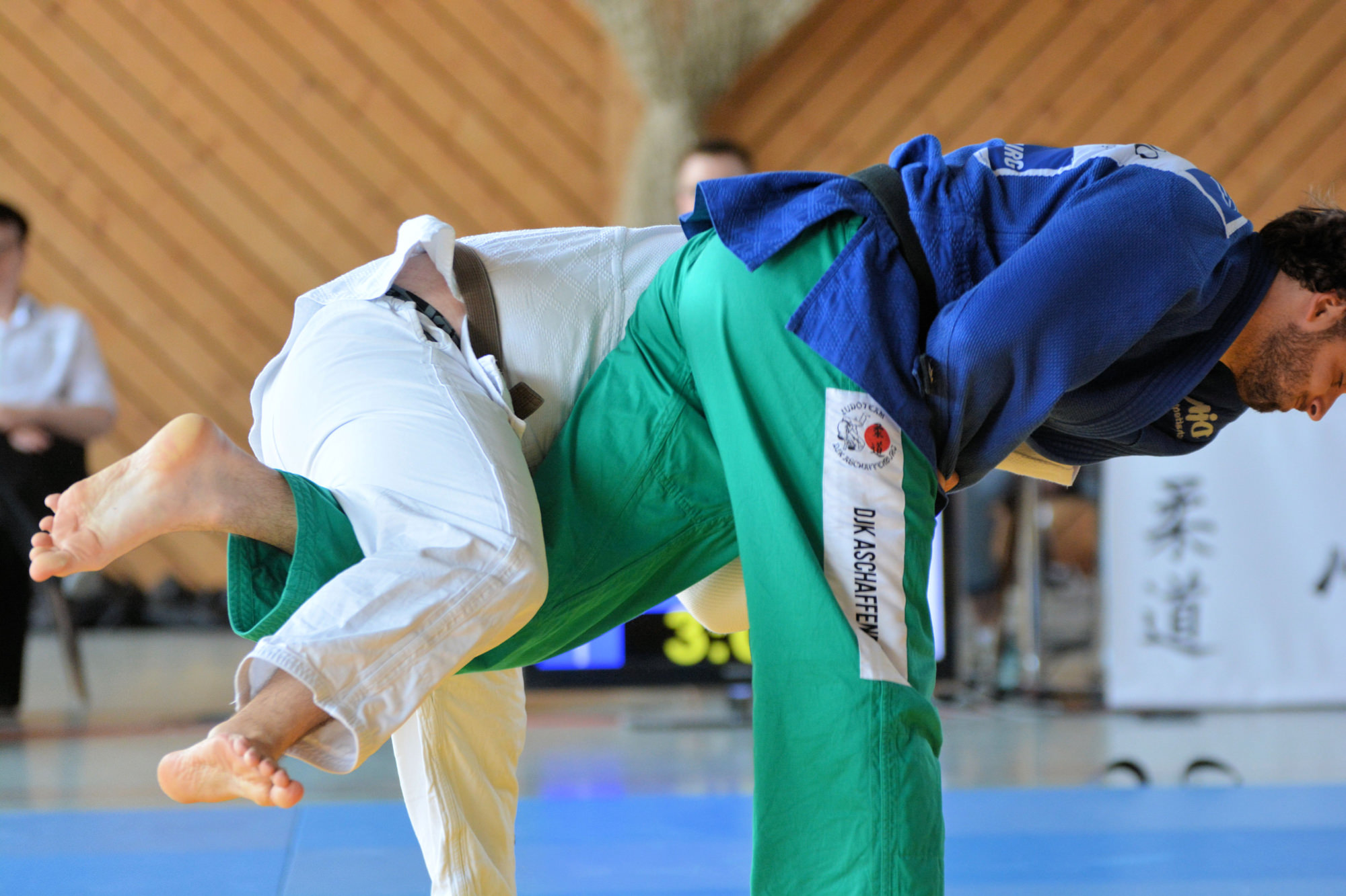 Bei den Männern der DJK Aschaffenburg, die die Gewichtsklassen -66 kg und -73 kg aufgrund von Verletzungen und anderweitigen Verpflichtungen nur einfach besetzten konnten, war die Ausgangslage am Samstag denkbar schwierig. Der TSV Altenfurt konnte als Gastgeber zuhause in Bestbesetzung auf die Aschaffenburger warten. In der ersten Begegnung bis 66 kg konnte Lukas Ühlein seinen Gegner Langer mit einem Armhebel besiegen. In der Gewichtsklasse -81 kg holte Daniel Stamm durch einen Sieg gegen den Altenfurter Soodbakhsh mit einem Haltegriff einen weiteren Punkt. Auch die beiden 90er Niklas Kern und Pascal Naubereit siegten für Aschaffenburg. Marcus Kaiser gewann seinen Kampf in der Gewichtsklasse +90 kg und Marco Senfleben überraschte den Erstligakämpfer Elias Frank mit einem Konter und brachte die Aschaffenburger mit 6:4 in die Halbzeitpause.