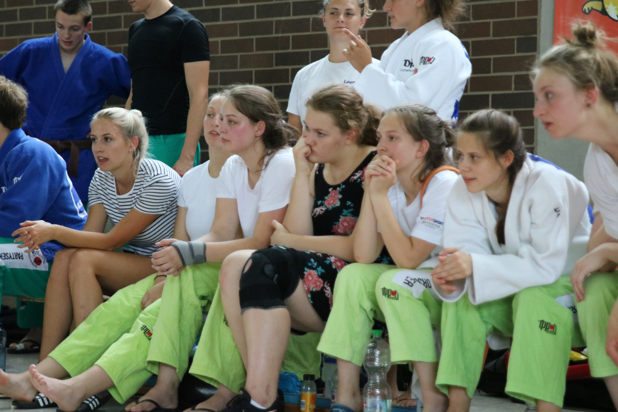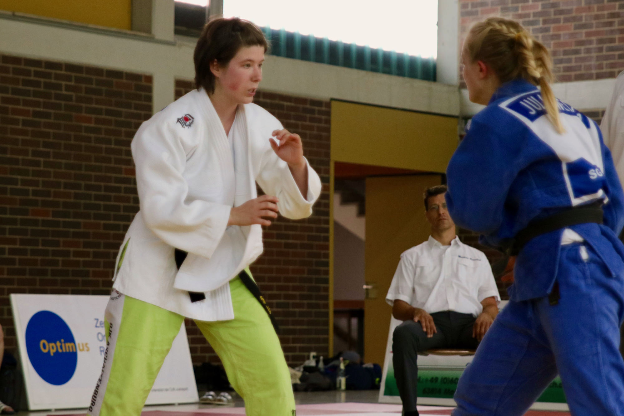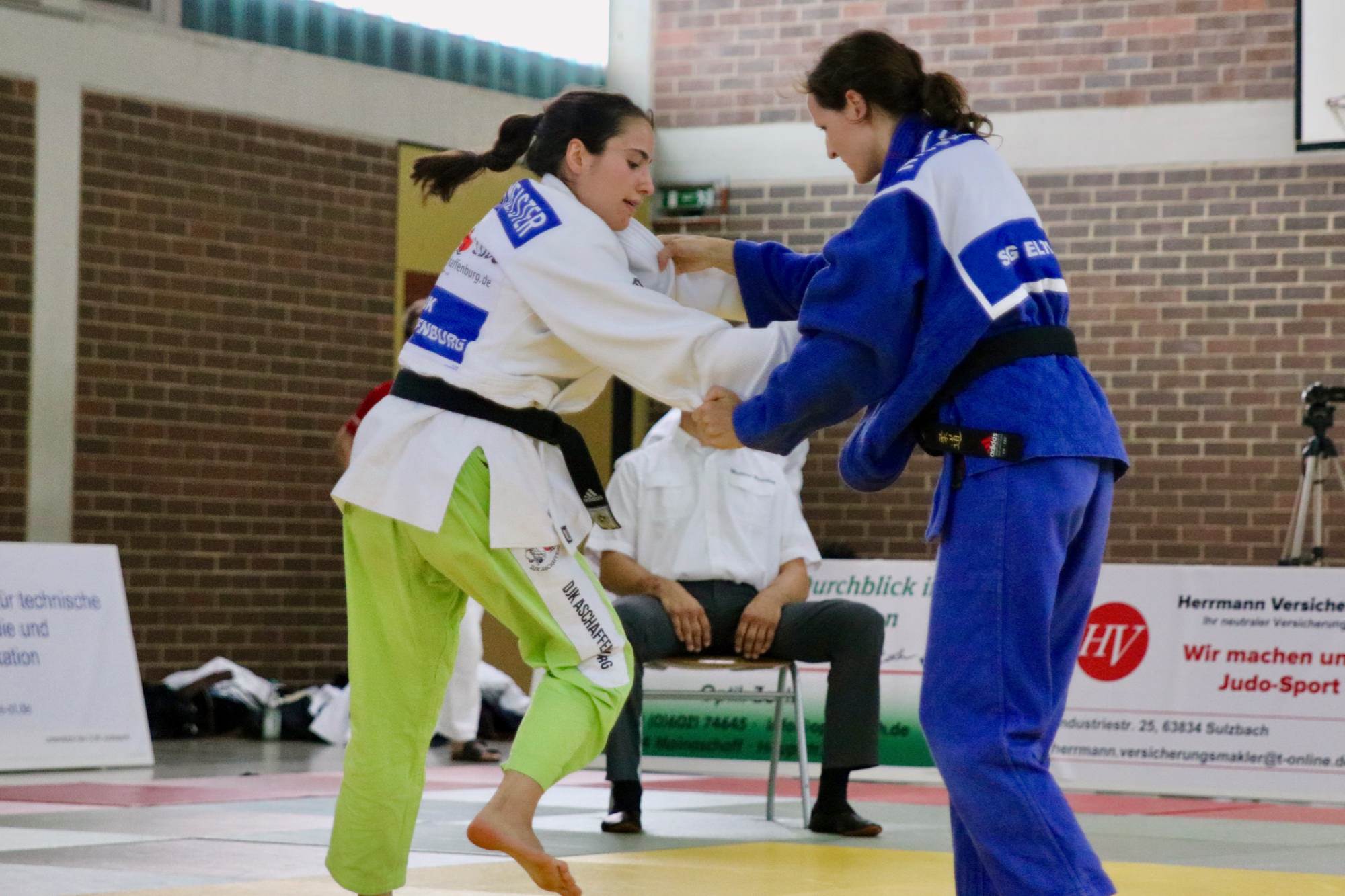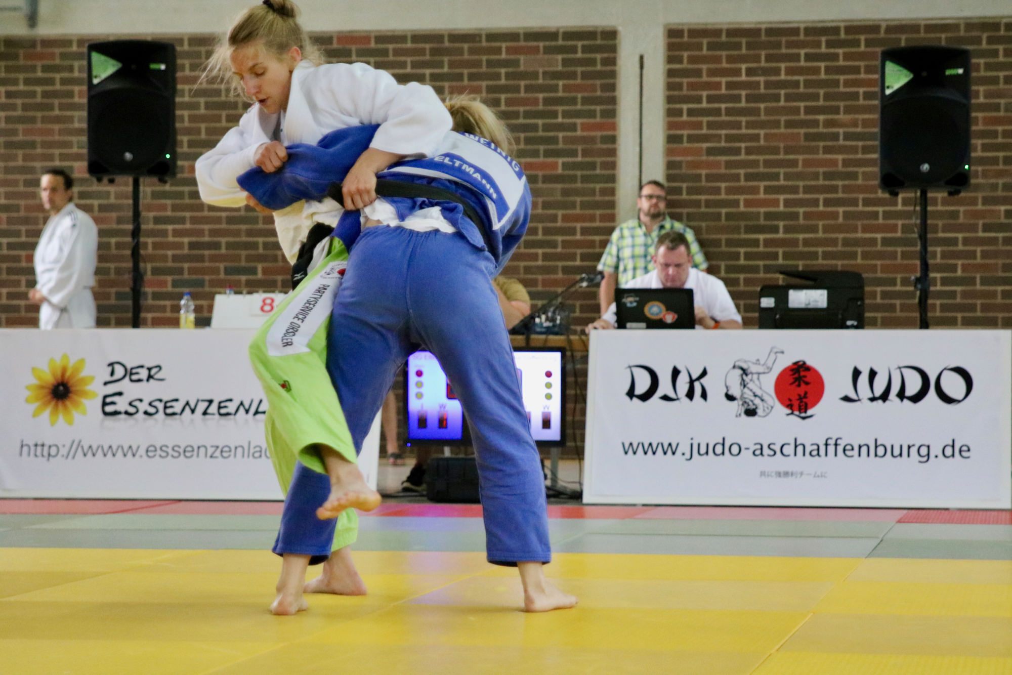 Die Begegnung begann für die Frauen der DJK Aschaffenburg mit einem Desaster. Nach fünf Kämpfen stand es vor heimischem Publikum 1:4, wobei nur Kimberly Grodtmann für die Aschaffenburger punkten konnte. Für eine Überraschung sorgte dann jedoch Neuzugang Jessica Spelten (-57 kg), die die Bundesliga-Kämpferin Rebecca Heidingsfelder mit eine Konter besiegte. Christin Bönig (-57 kg) mit zwei Schulterwürfen und Lisa Ludolph mit einem Haltegriff gegen die Bundesligakämpferin Lara Wiedemann sorgten in einer tollen Aufholjagd für den 4:4 Pausenstand. „Ein Unentschieden am Ende wäre toll“, sagte Coach Detlef Staffa.