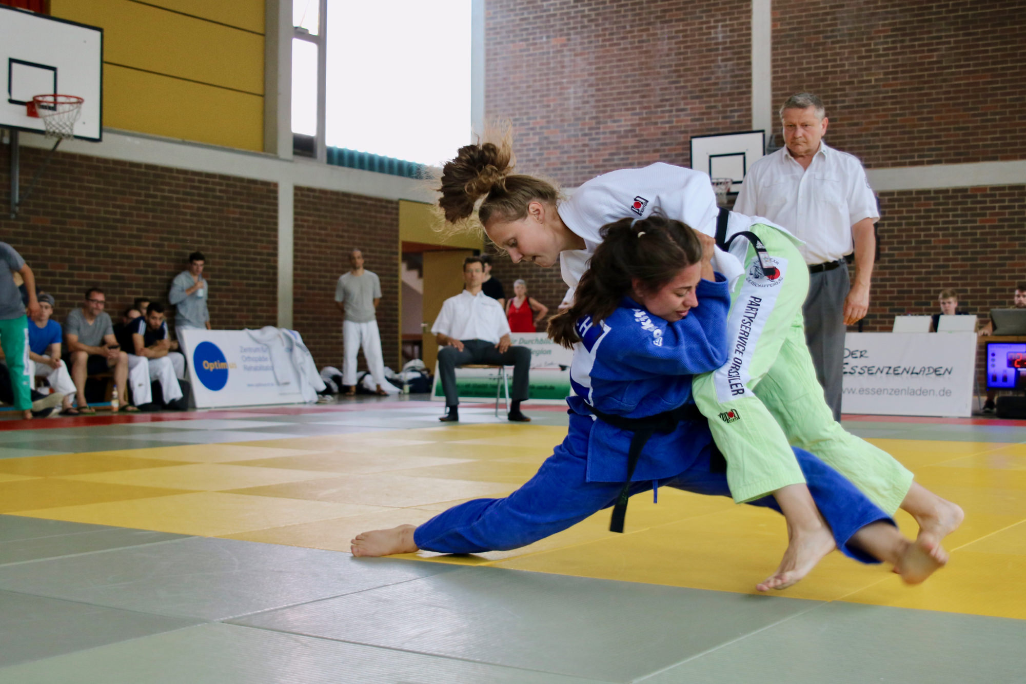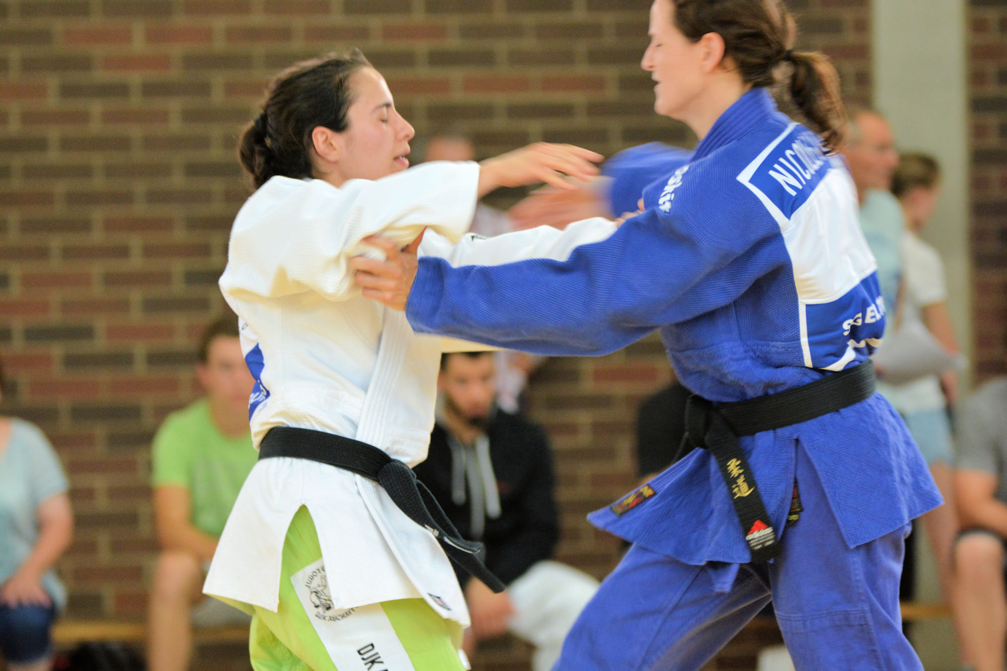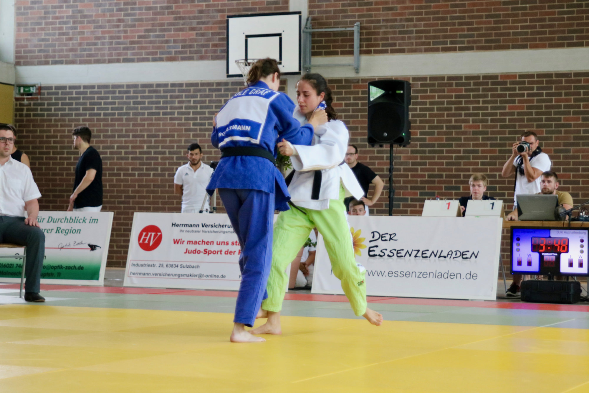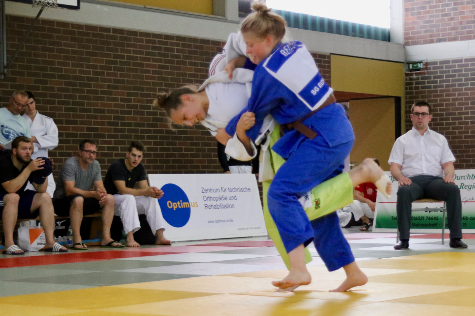 Die Begegnung begann für die Frauen der DJK Aschaffenburg mit einem Desaster. Nach fünf Kämpfen stand es vor heimischem Publikum 1:4, wobei nur Kimberly Grodtmann für die Aschaffenburger punkten konnte. Für eine Überraschung sorgte dann jedoch Neuzugang Jessica Spelten (-57 kg), die die Bundesliga-Kämpferin Rebecca Heidingsfelder mit eine Konter besiegte. Christin Bönig (-57 kg) mit zwei Schulterwürfen und Lisa Ludolph mit einem Haltegriff gegen die Bundesligakämpferin Lara Wiedemann sorgten in einer tollen Aufholjagd für den 4:4 Pausenstand. „Ein Unentschieden am Ende wäre toll“, sagte Coach Detlef Staffa.