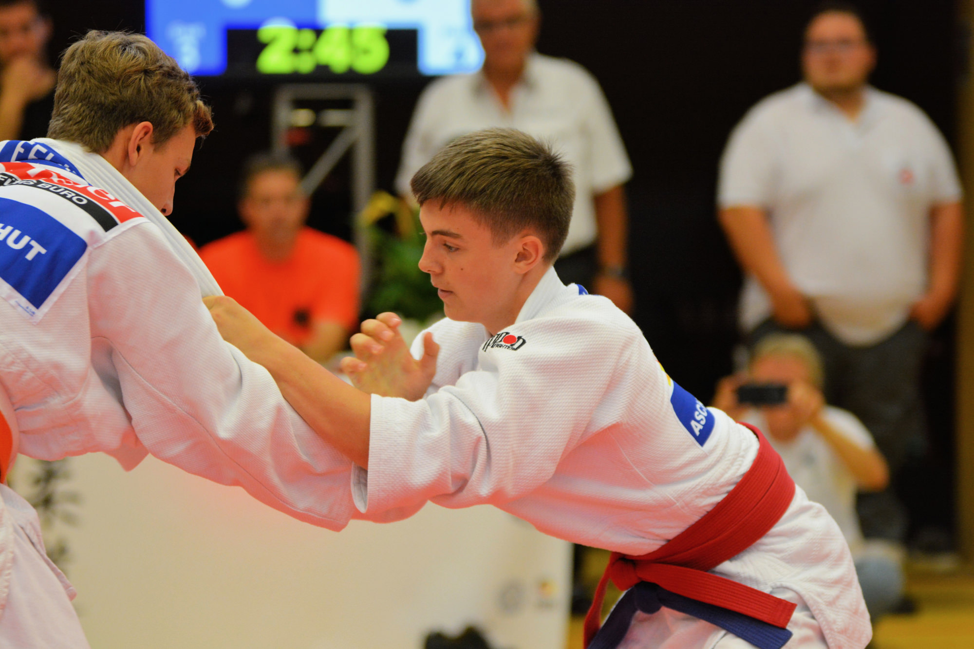 Am Samstag musste sich die männlich Auswahl im Pool leider dreimal geschlagen geben und belegte am Ende den 7. Platz. Dennoch sorgten Theo Aulenbach und Lukas Ühlein, Daniel Seitz und Elias Zöller mit spektakulären Würfen für überzeugende Punkt. Von der DJK Trainingsgruppe waren weiterhin Felix Kruse, Lukas Roth, Louis Meidel (Obernburg) und der stellvertretende Jugendleiter des Bezirks Unterfranken, Jonas Ludwig, in seinem letzten aktiven Jahr bei den Jugendlichen auf der Matte.