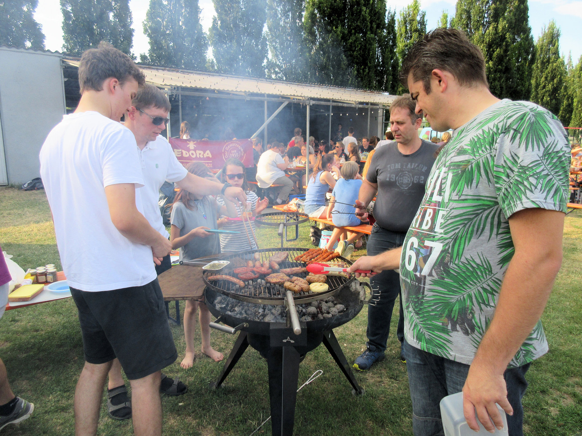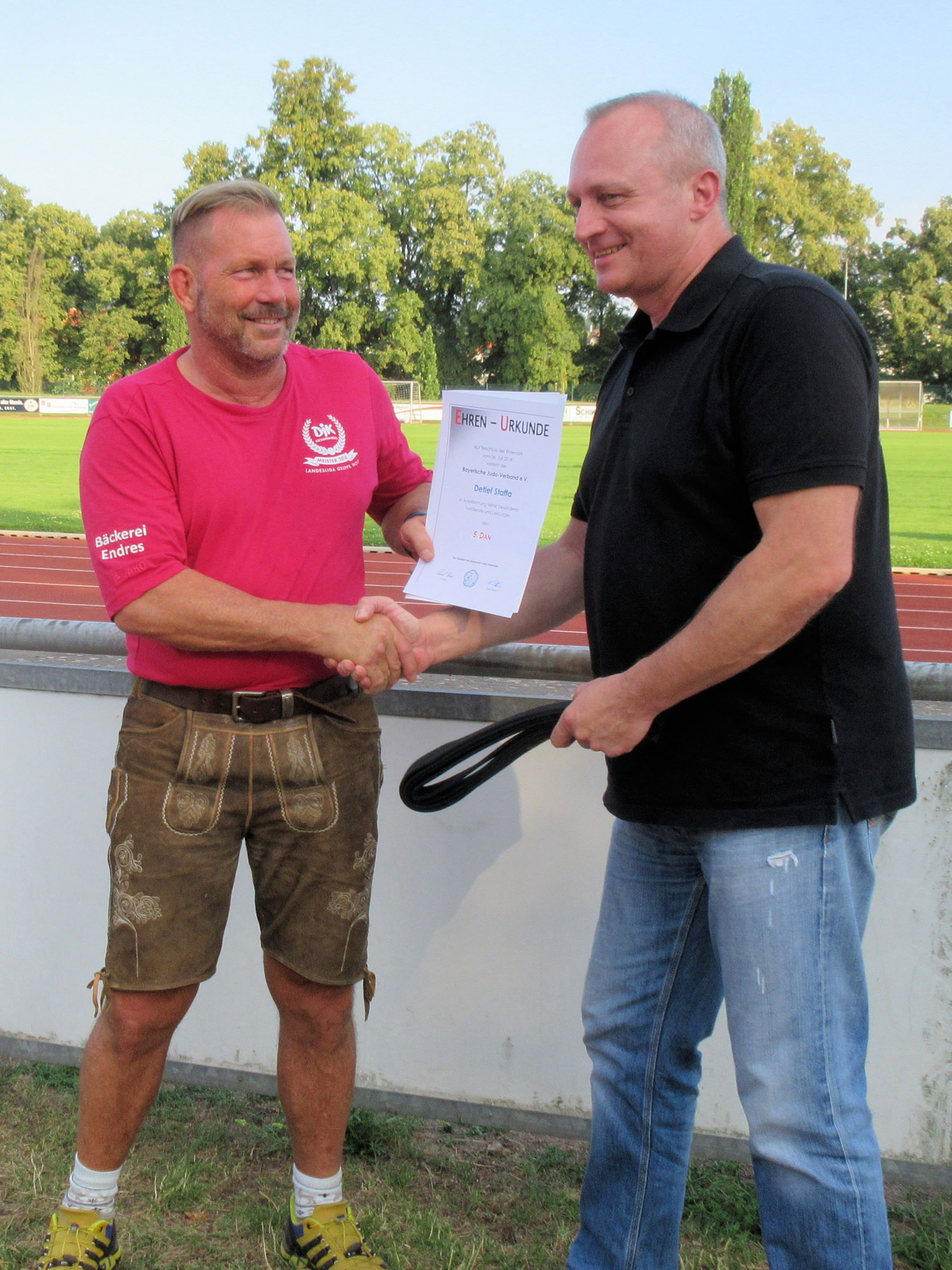 Das Sommerfest war wie jedes Jahr ein Highlight. Etwa 220 Aktive, Eltern, Partner, Kinder und Freunde kamen am 14. Juli zur DJK Grillhalle, um bei Gegrilltem und kühlen Getränken das Schuljahr ausklingen zu lassen. Mit am Start waren wieder ein Pool, ein Volleyballfeld, Basketball, Slacklines und diesmal sogar zwei Hüpfburgen. Als besonderer Kracher stellten sich die von Sponsor VÄTH Motorentechnik GmbH zur Verfügung gestellten Zorbing Bälle heraus. Jung und Alt hatten dabei einen Riesenspaß – Danke, Andi! Eine Überraschung gab es für unseren Detlef, dem im Rahmen des Sommerfests vom Bayerischen Judoverband den 5. Dan verliehen wurde (Details siehe hier). Obwohl es schon um 16 Uhr losgegangen war, wurde noch bis spät in die Nacht gefeiert, zum Schluss rund um die große Feuerschale.
