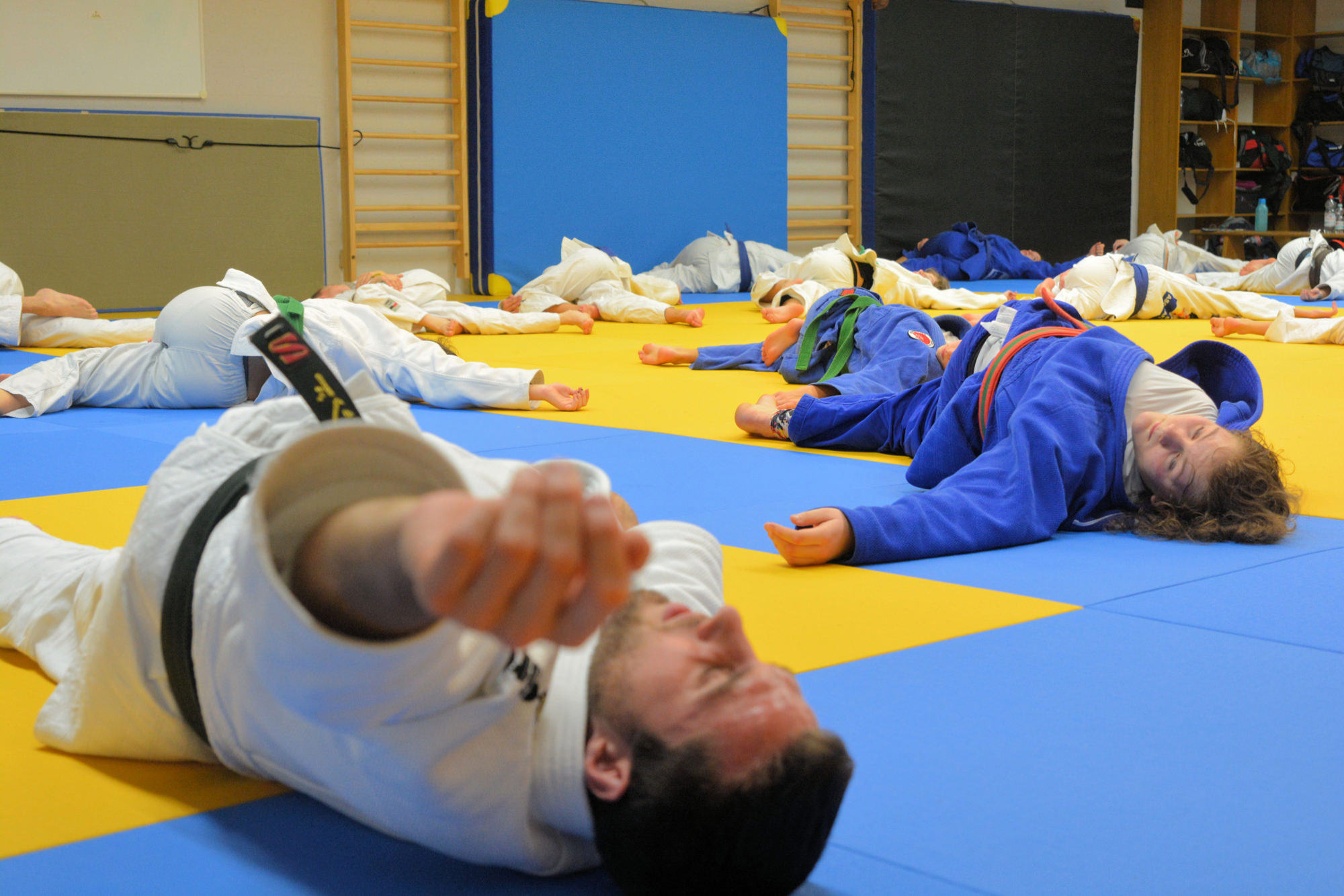 Nach einem Nudelbuffet ging es mit dem Übergang Stand-Boden mit der Weiterführung (Gurke, Fesselung) nach einem misslungenen oder nur teilweise erfolgreichem Wurf weiter.
