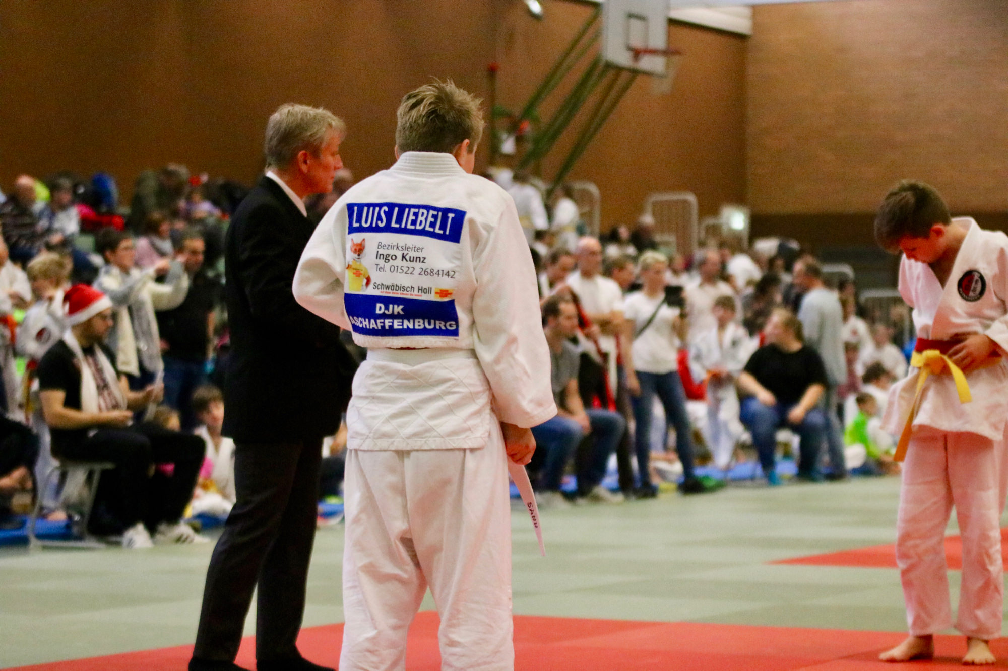 Beim traditionellen Weihnachtsturnier in Obernburg konnte die Trainingsgruppe der DJK Aschaffenburg in diesem Jahr mit über 30 Kindern ein Viertel der Teilnehmer stellen und dementsprechend je 10 mal Gold, Silber und Bronze erkämpfen. Einen besonderen Dank gilt hierbei den Betreuern Dirk Lichthardt, Daniel Nägele und Jonas Ludwig, die einen Mammutjob zu erledigen hatten. Sogar Carsten, der sich eigentlich krank gemeldet hatte, ließ es sich nicht nehmen, schneller zu gesunden und das Team zu unterstützen.