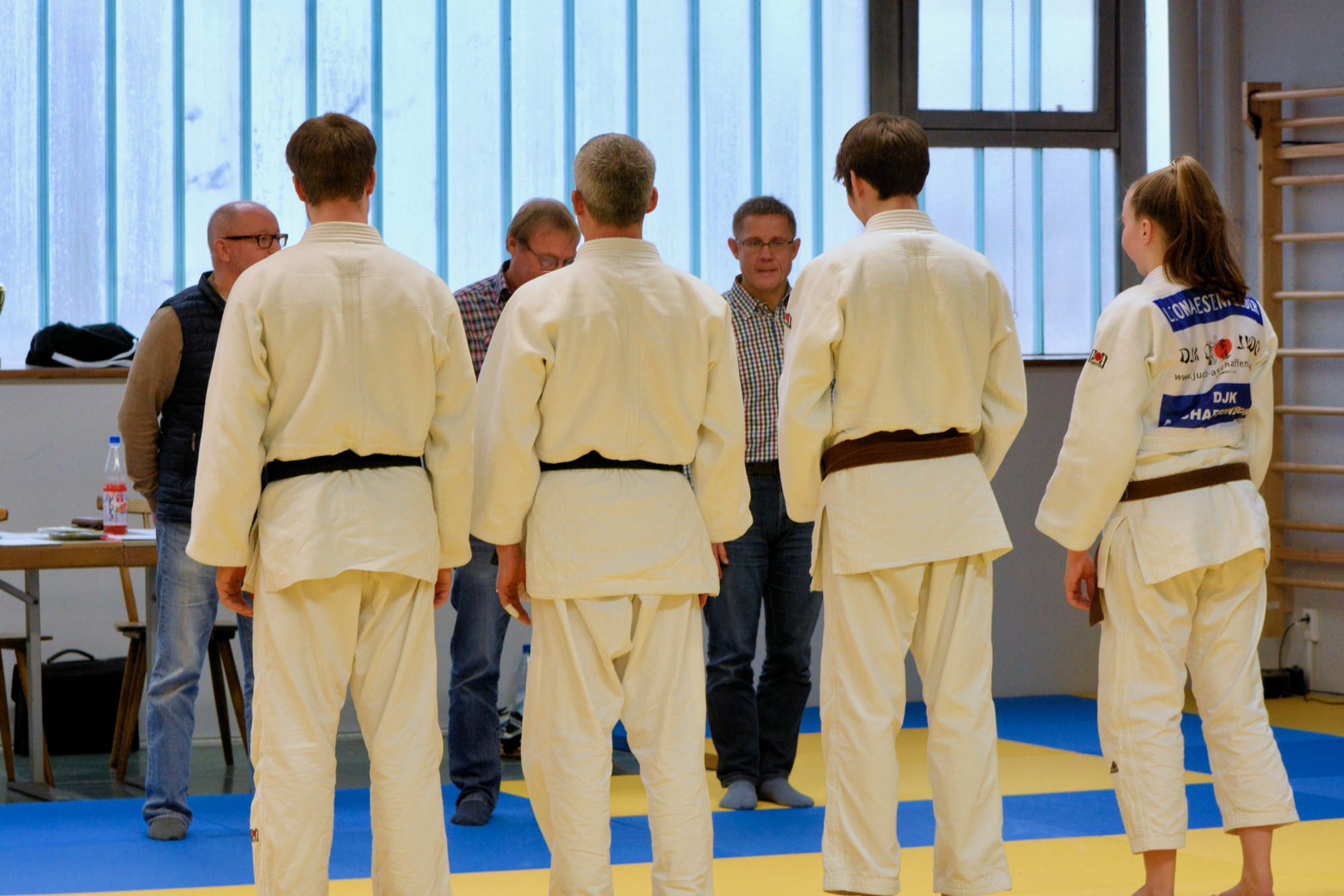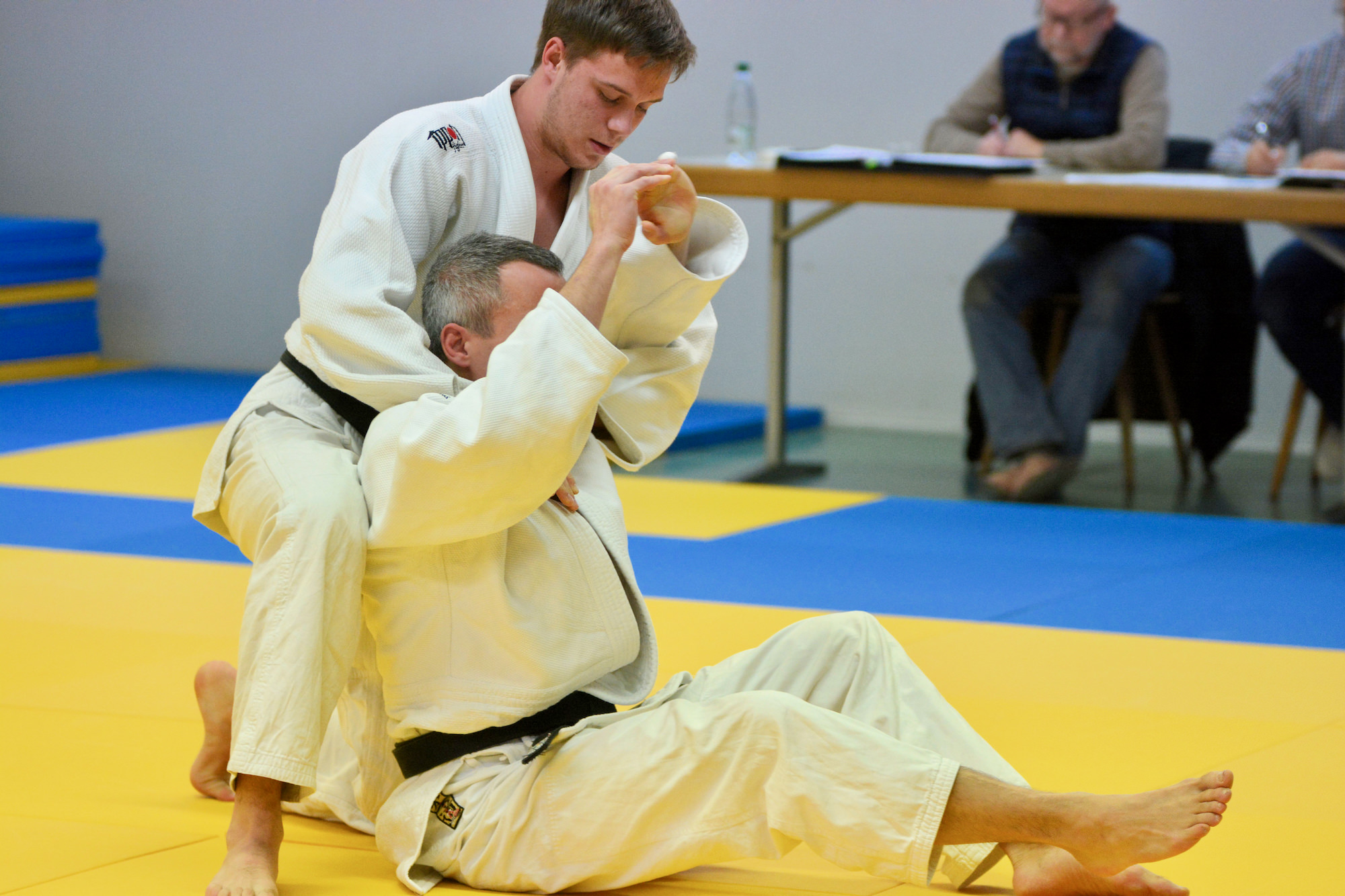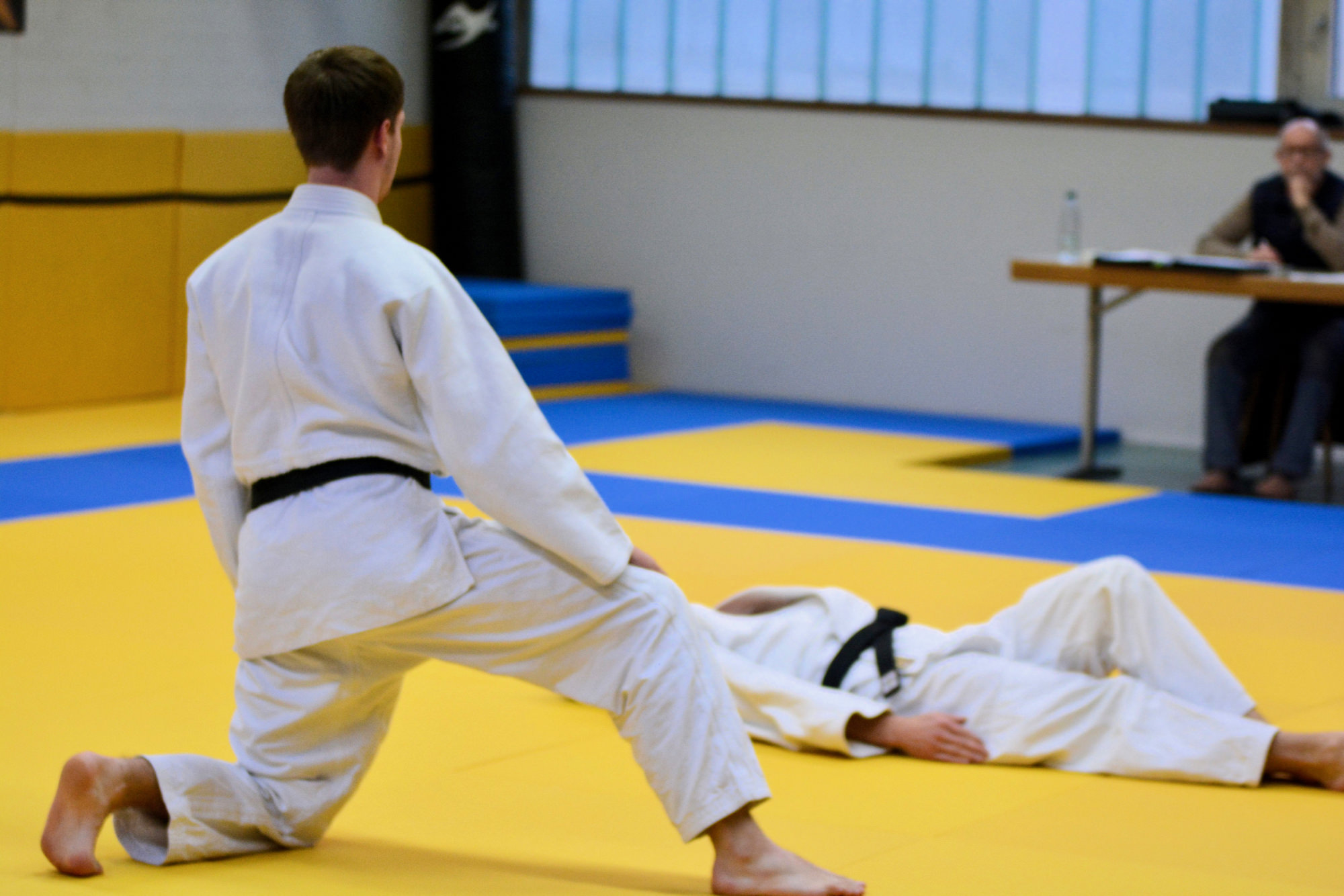Unter den Augen von Prüfungsreferent Sven Keidel und dem Vizepräsidenten des BJV, unserem DJK’ler Klaus Richter, sowie sieben weiteren Mitgliedern des Danprüfer-Teams legten am Vormittag auch sechs lokale Judoka Teilprüfungen für den nächsten Dangrad ab. Jonas Ludwig, Carsten Sann, Anne Endres und David Zöller zeigten für den 2. Dan die Katame-no Kata (Bodentechniken), Leona Estenfelder und Theo Aulenbach für den 1. Dan die Nage-no Kata (Wurftechniken). Alle bestanden ihre Prüfungen mit Bravour.